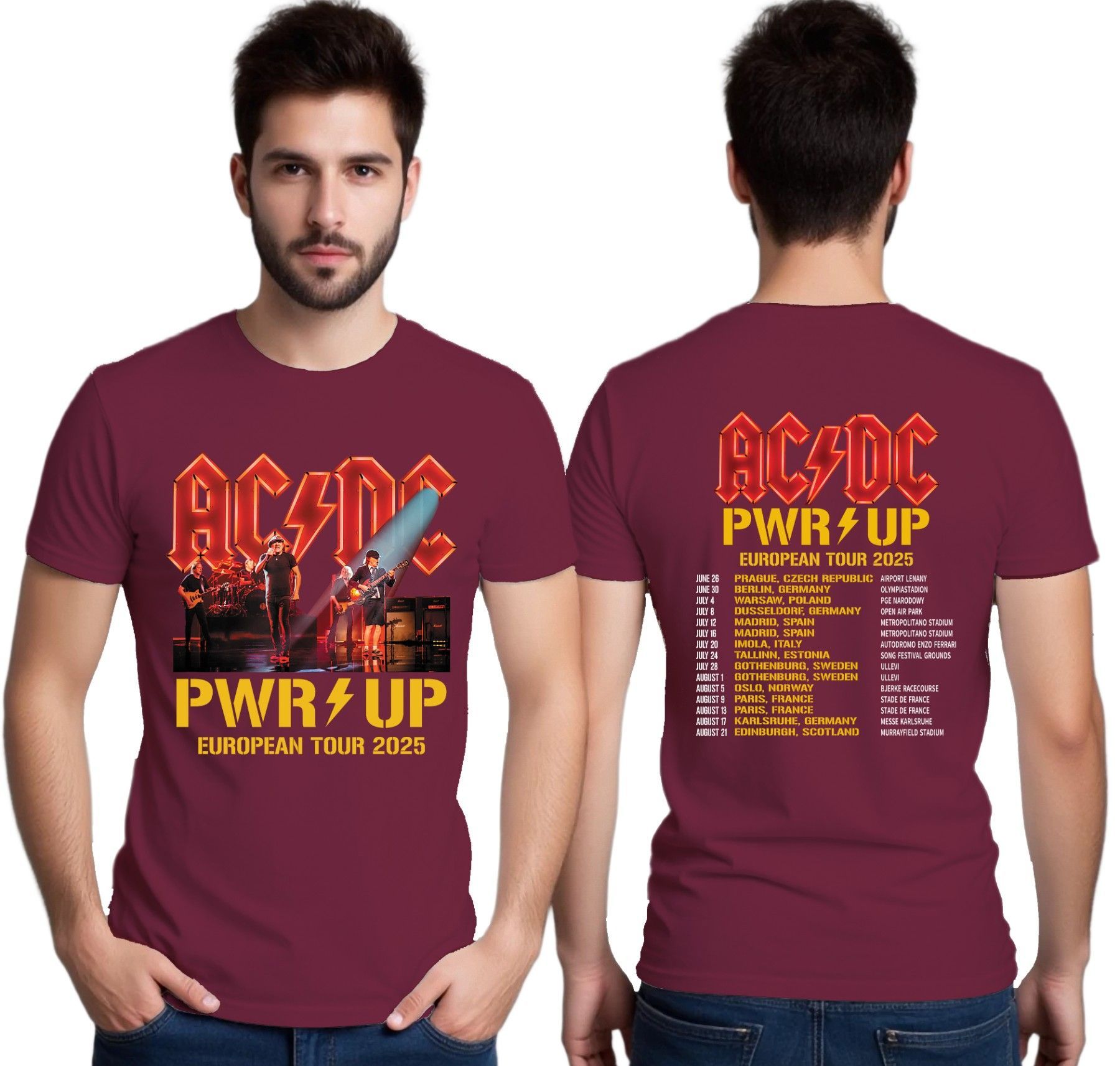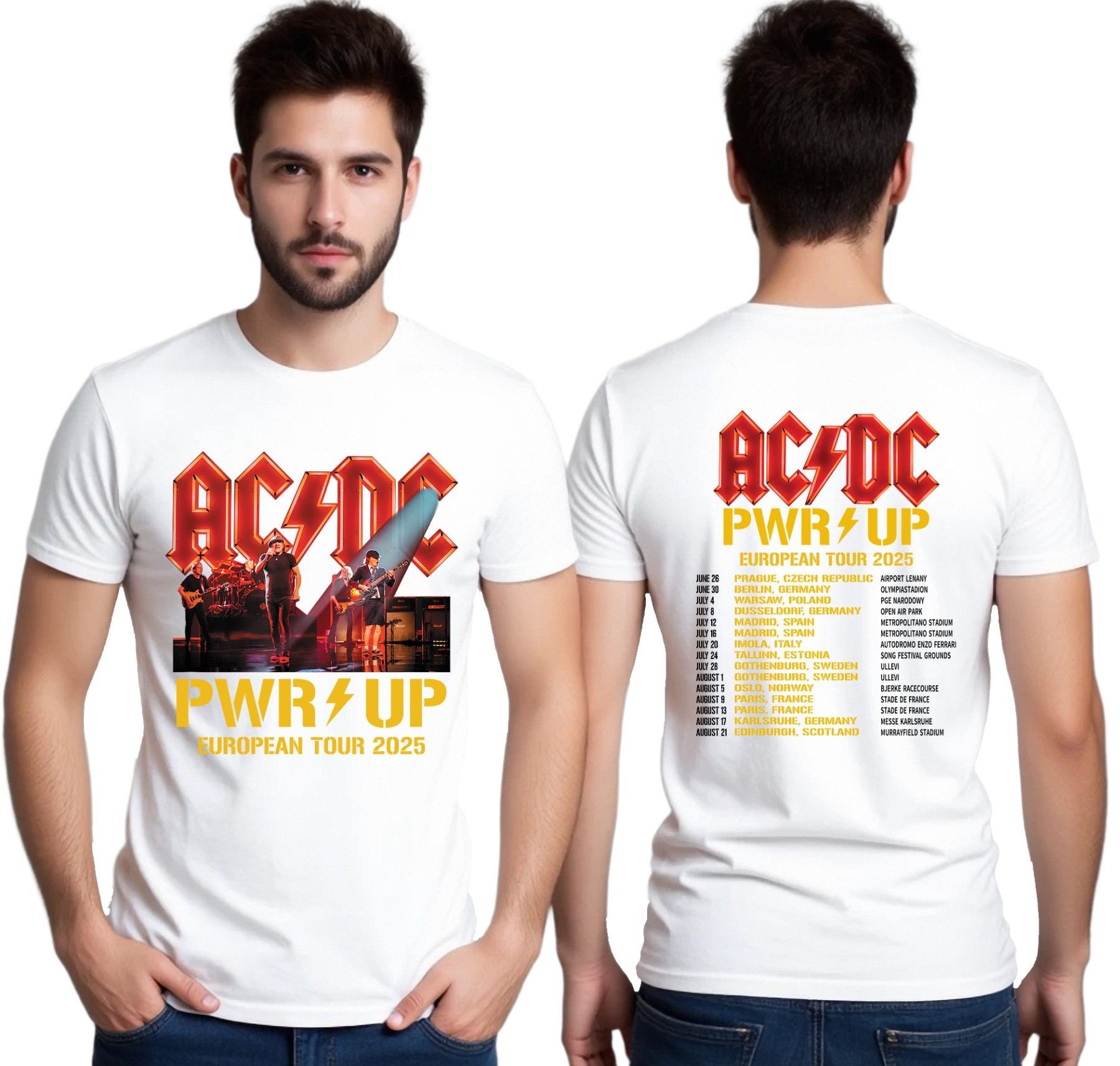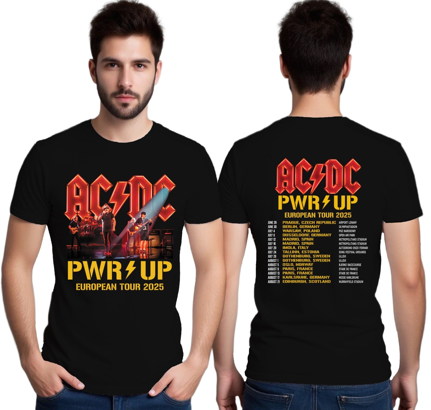 AC/DC PWR UP TOUR 2025 Official Merch | Hard Rock Europatour Shirt mit Konzertdaten