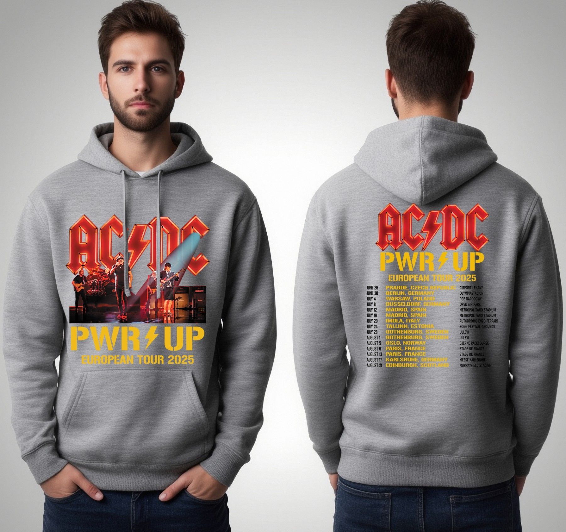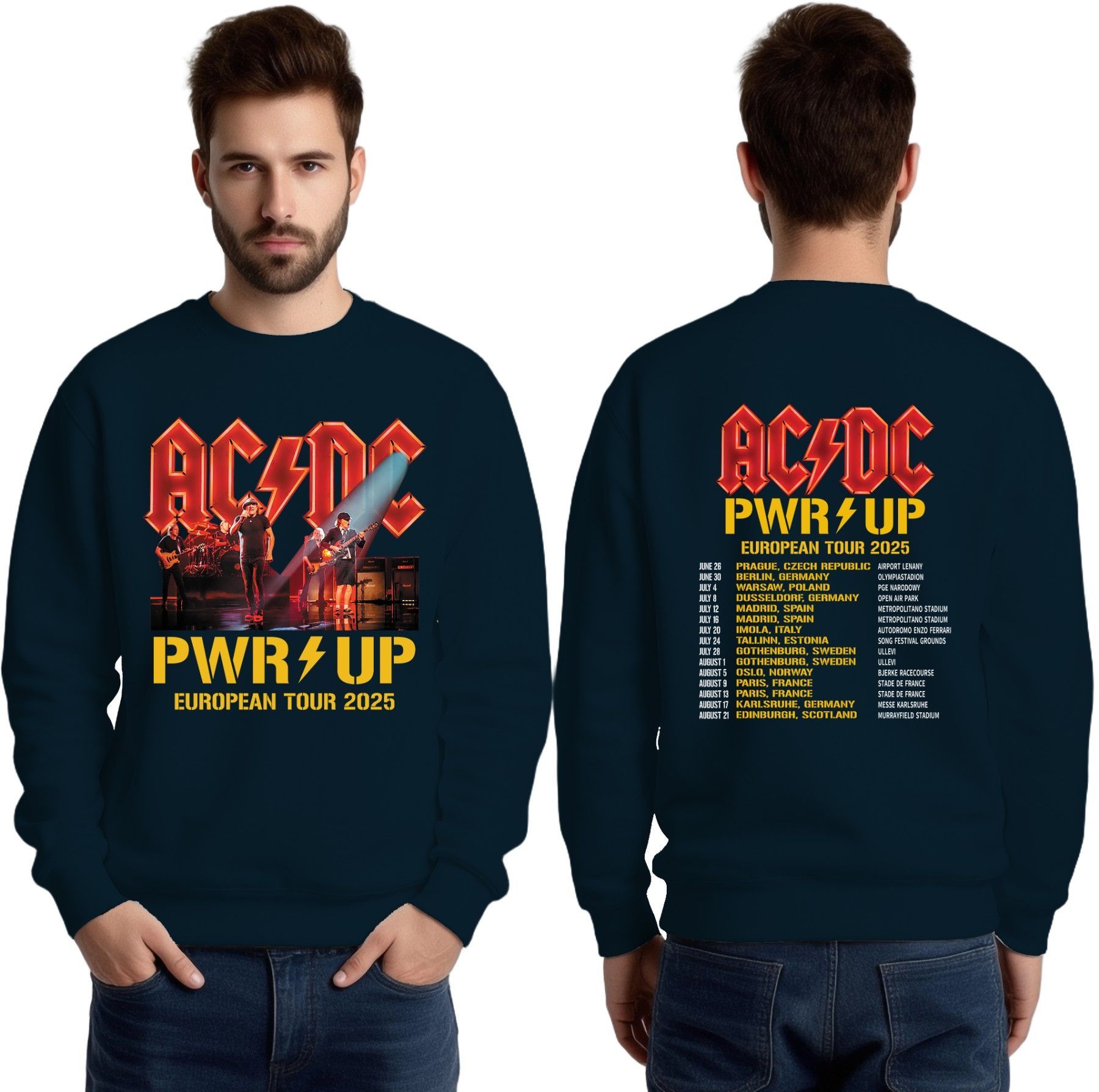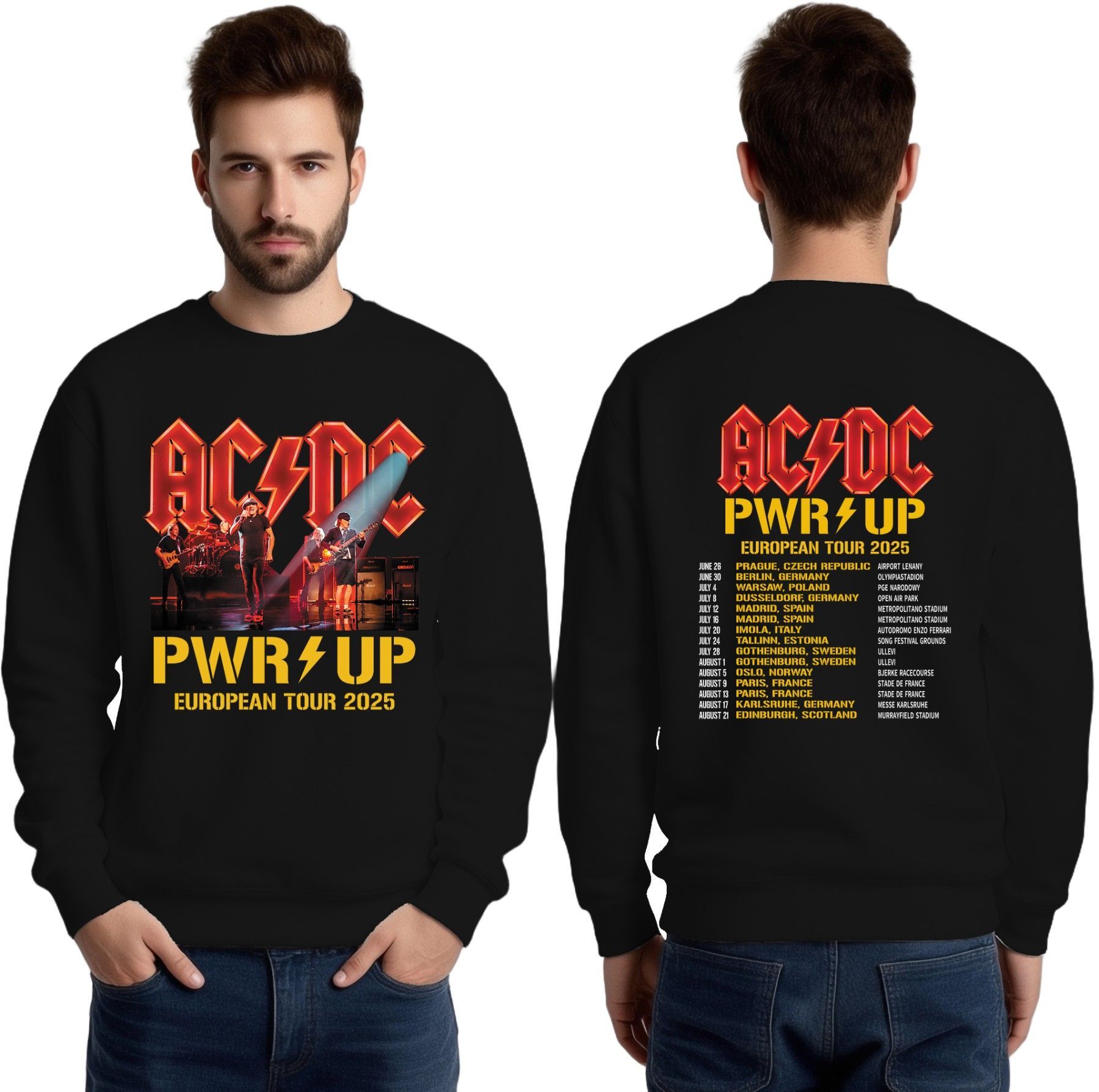 AC/DC PWR UP TOUR 2025 Official Merch | Hard Rock Europatour Shirt mit Konzertdaten