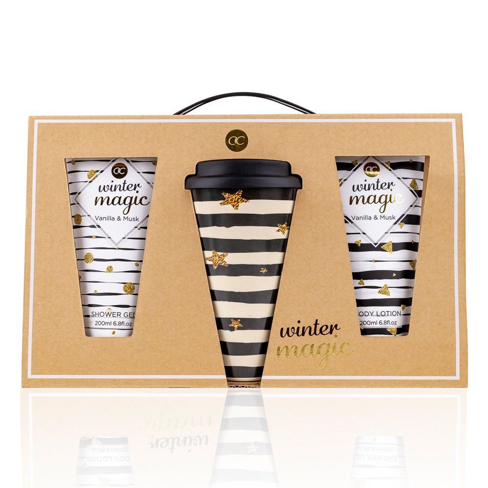 Accentra Set Winter Magic Duschgel Bodylotion Coffee To Go Becher aus Bambusfaser
