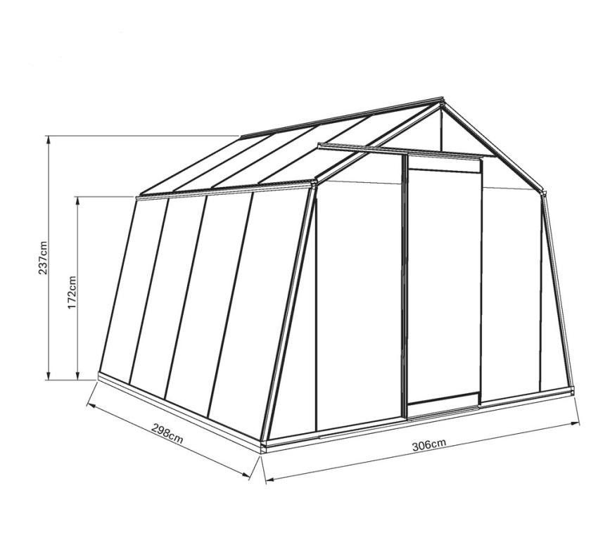 ACD Glasgewächshaus S104 - 3,06 x 2,98m - Aluline LIEFERZEIT: ca. 4-6 Wochen Neben der äußerst attraktiven Form legt ACD viel Wert auf Praktikabilität und optimale Raumnutzung. So garantiert die extreme Traufenhöhe eine angenehme Steh- und Arbeitshöhe. Es können Tomatenstauden, Pflanztische oder Ähn