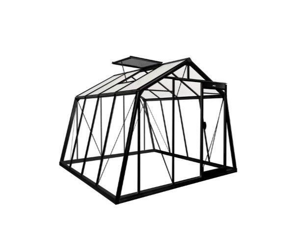 ACD Glasgewächshaus S104 - 3,06 x 2,98m - Blackline LIEFERZEIT: ca. 4-6 Wochen Neben der äußerst attraktiven Form legt ACD viel Wert auf Praktikabilität und optimale Raumnutzung. So garantiert die extreme Traufenhöhe eine angenehme Steh- und Arbeitshöhe. Es können Tomatenstauden, Pflanztische oder Ä
