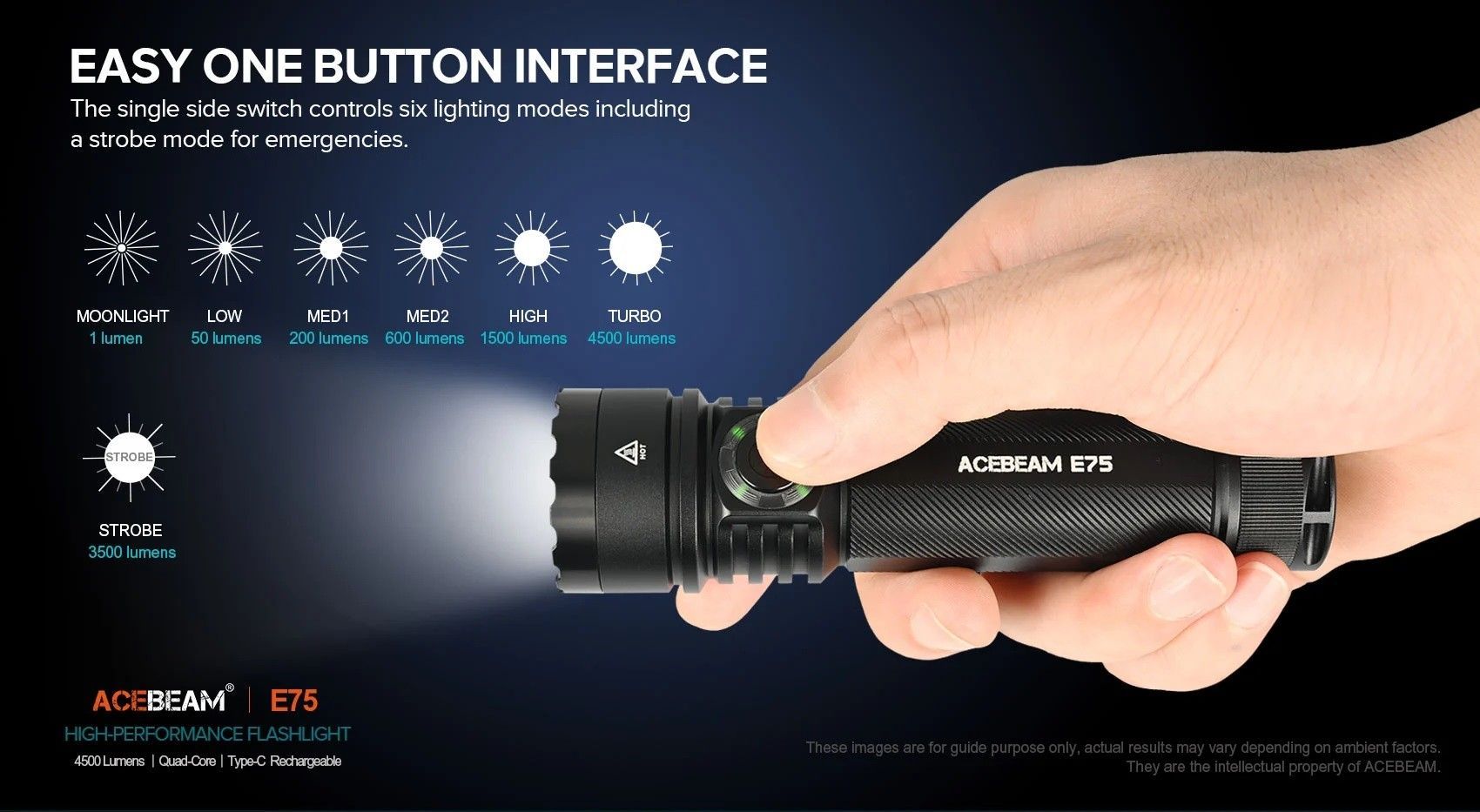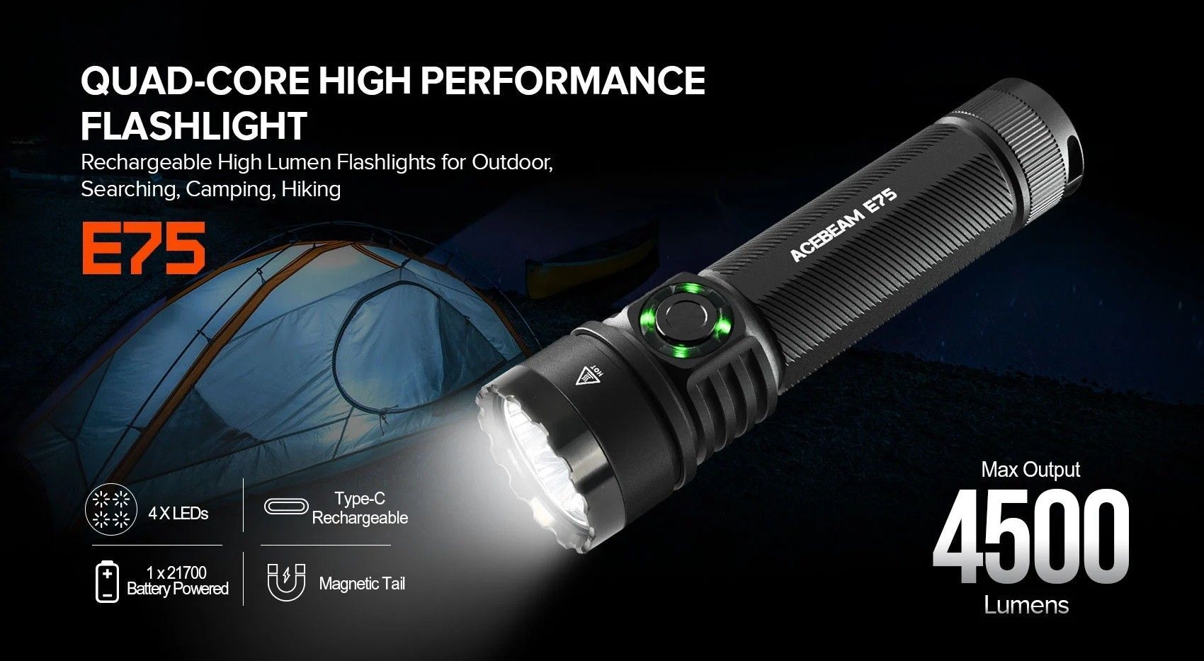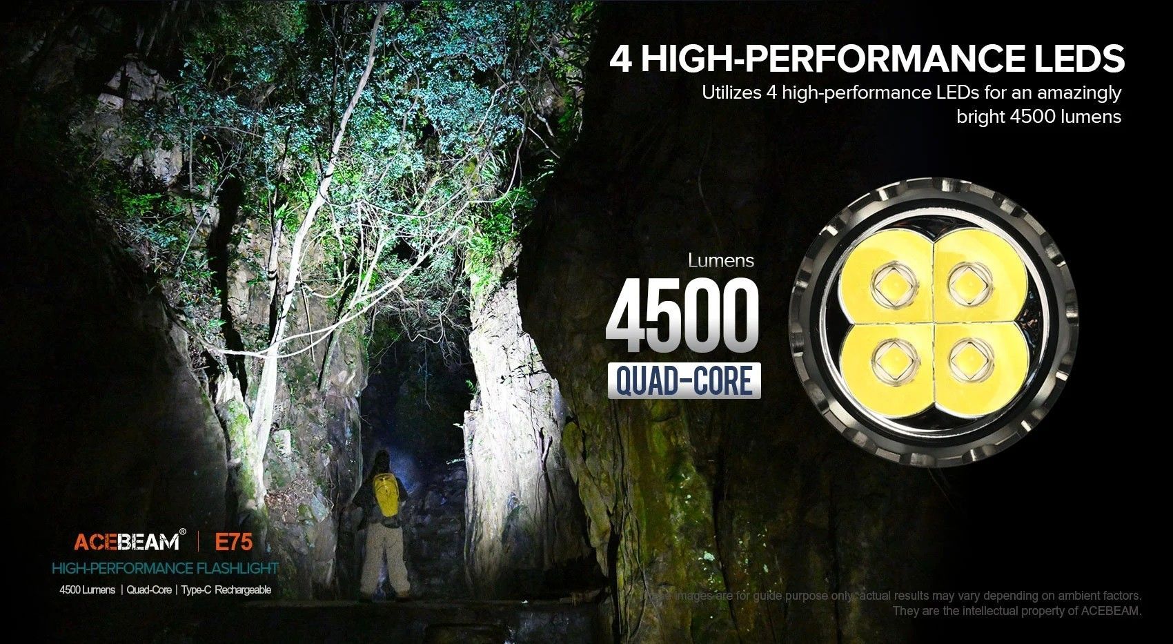 AceBeam E75 Quad Core mit 4.500 Lumen und 260 Metern