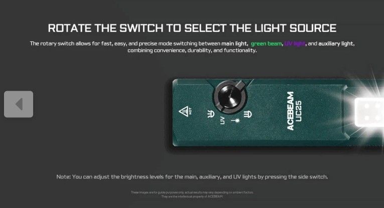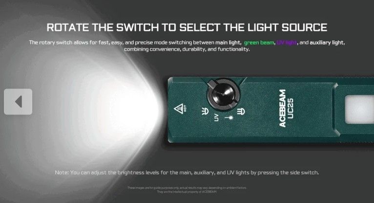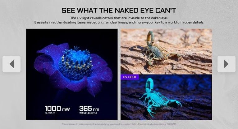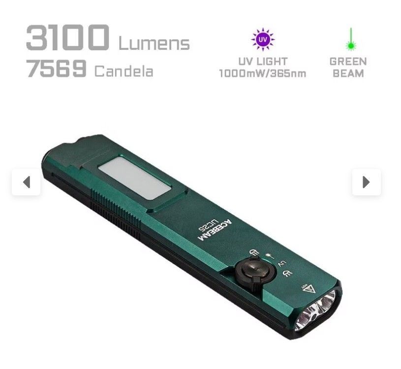 AceBeam UC25 mit 3.100 Lm Kalt.- Warmweißem / UV Licht und grünem Laser