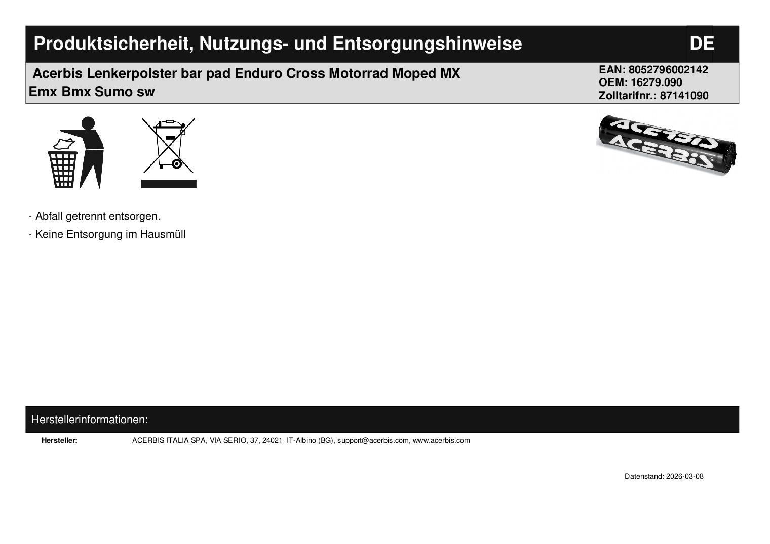 Acerbis Acerbis Lenkerpolster bar pad Enduro Cross Motorrad Moped MX Emx Bmx Sumo sw