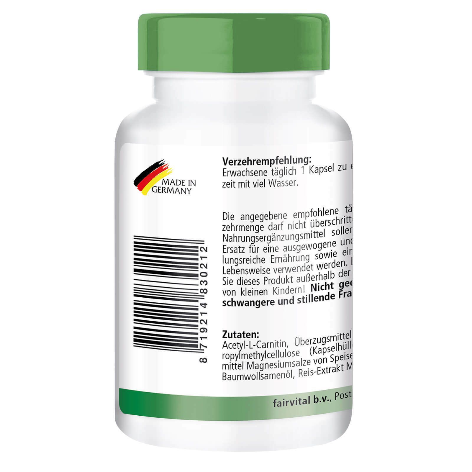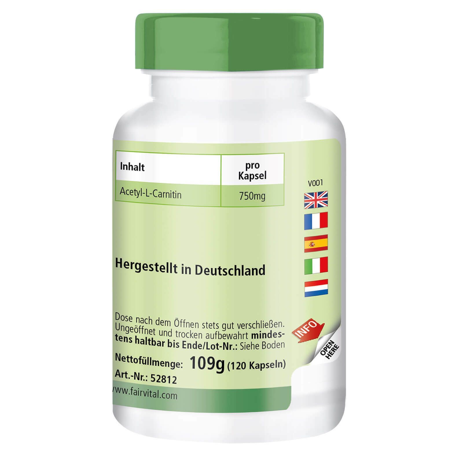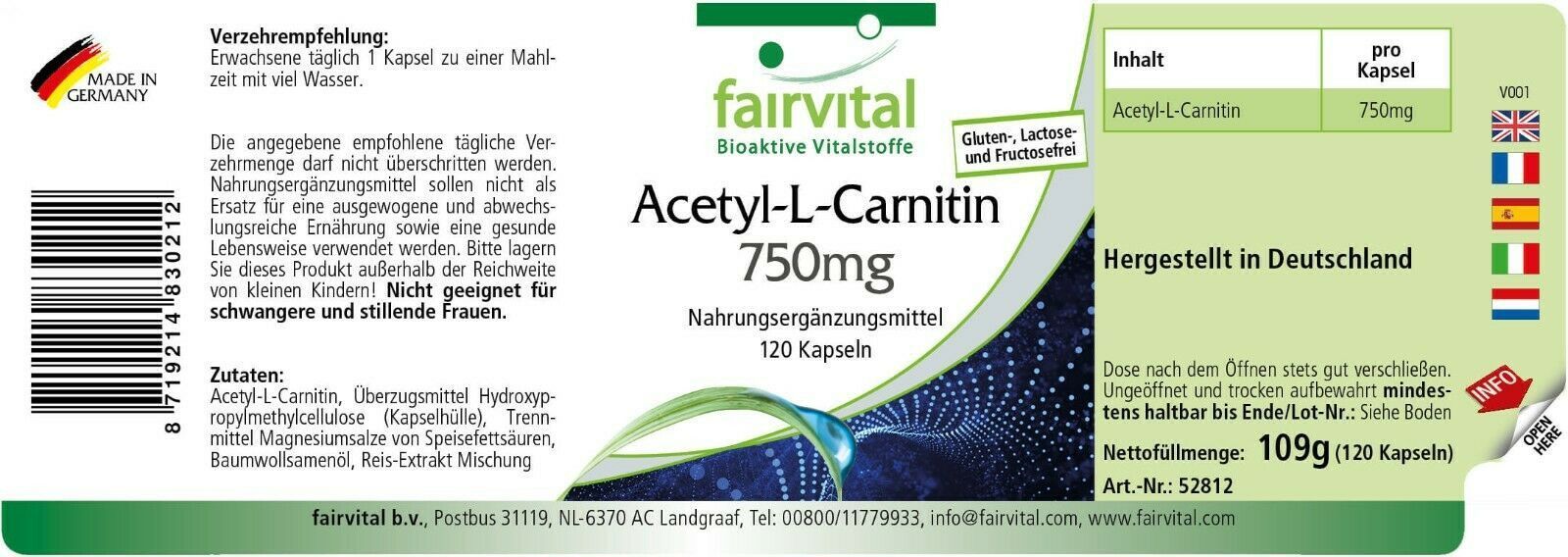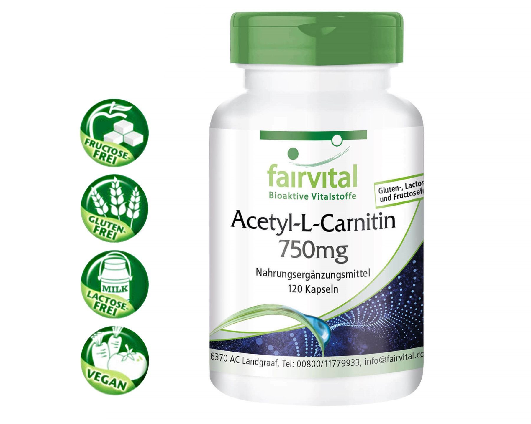 fairvital Acetyl-L-Carnitin 750mg - 120 Kapseln - vegan, effektive Form MHD 10/2026 - fairvital