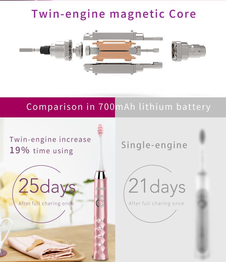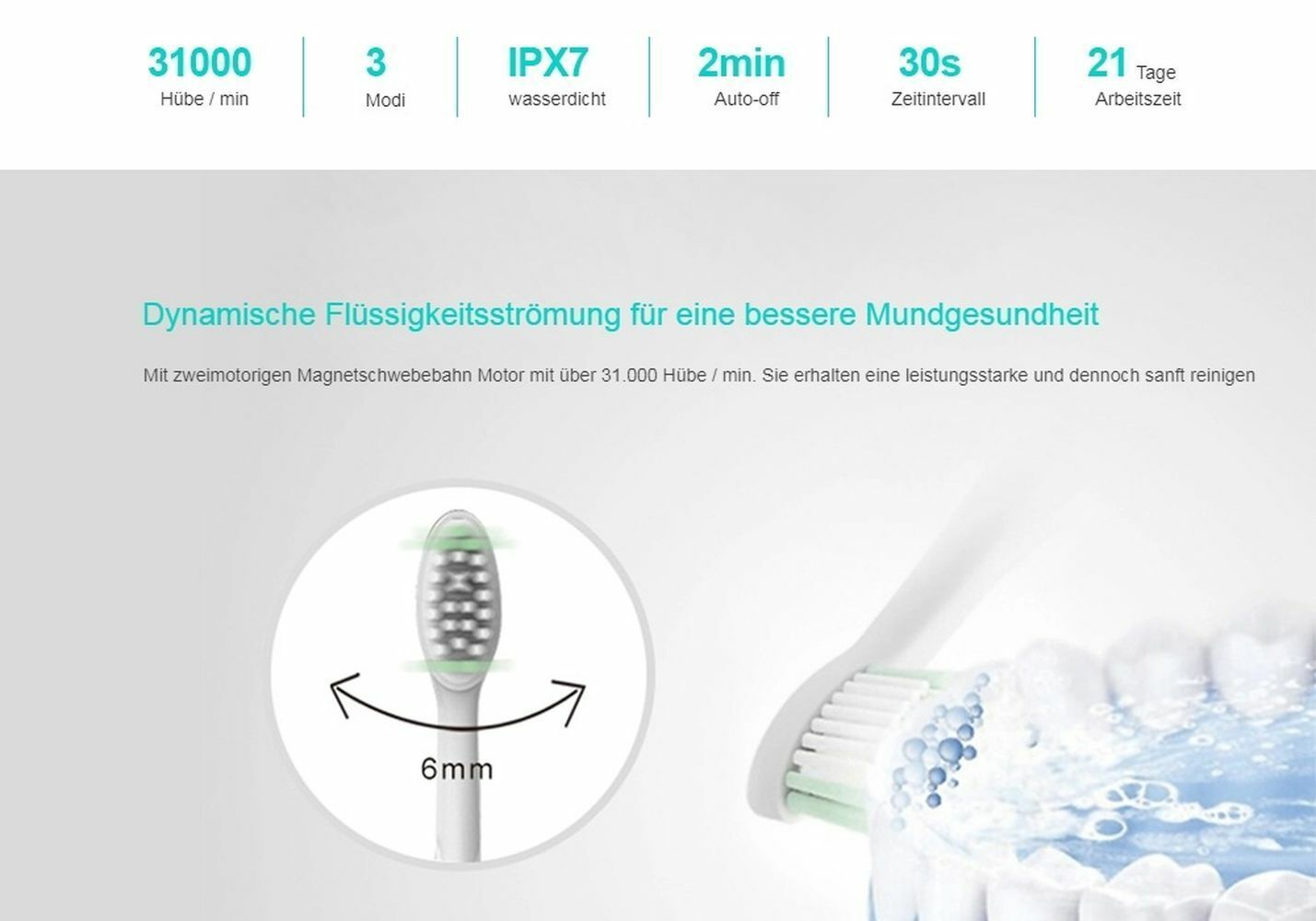 Acevivi Sonic S1 AKKU Schall Zahnbürste 31000U/Min 700mA 3 Bürsten Timer 3 Modi