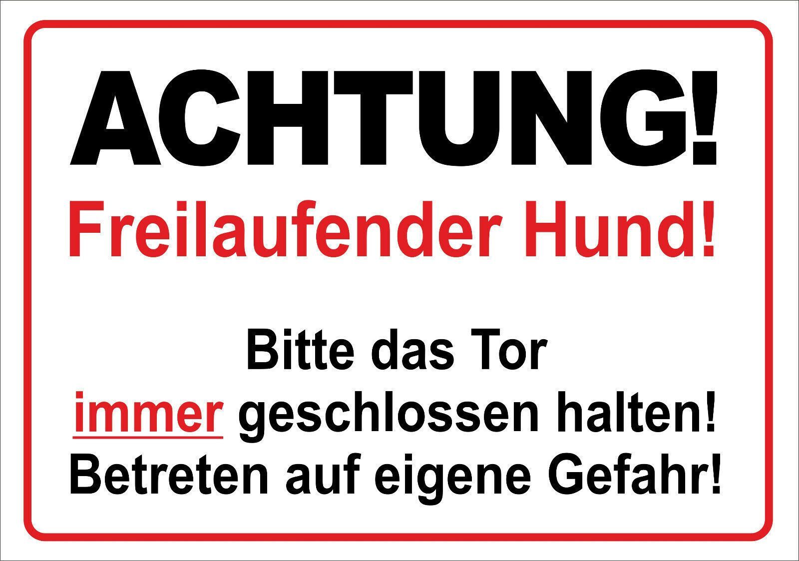 Achtung Freilaufender Hund Betreten auf eigene Gefahr - Schild mit abger. Ecken!