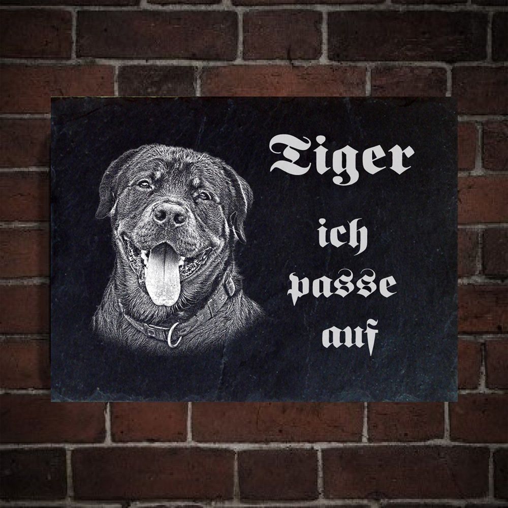 Achtung Rottweiler Schieferstein Schild Hunde Hund-018 -Wunschgravur- 35 x 25 cm