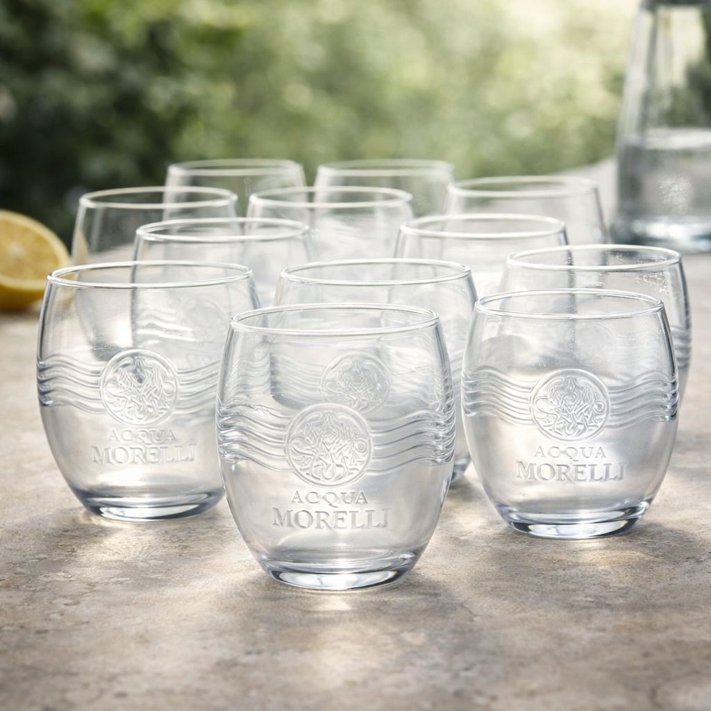 Acqua Morelli Wassergläser 12er Set - Klare Tumbler Gläser mit Relief | Neue Edition