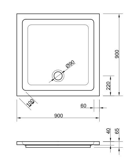 Acryl Duschwanne Riga E 90 x 90 cm Duschbecken Träger Fußgestell Ablauf