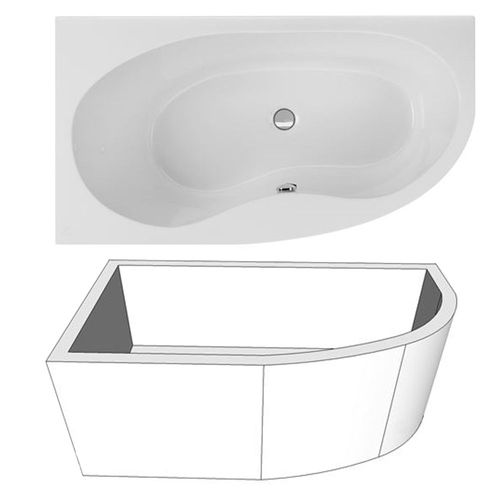 Acryl Raumsparwanne Luzern links 164 x 90 cm weiß Wanne Styropor Wannenträger