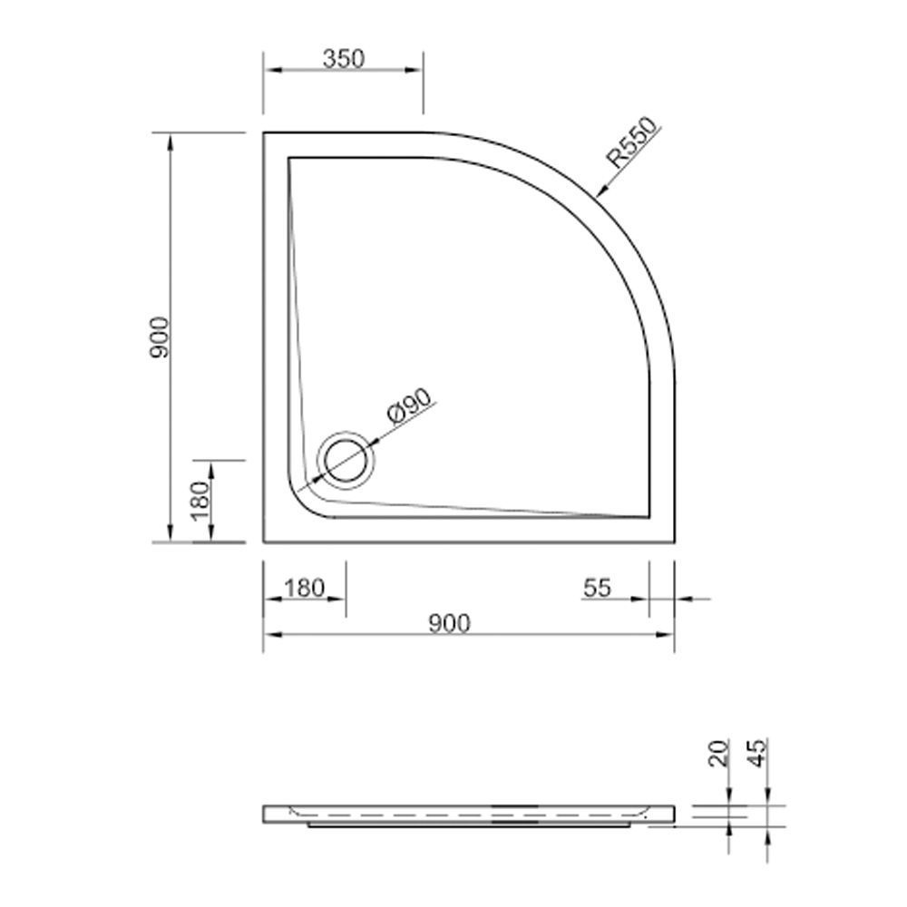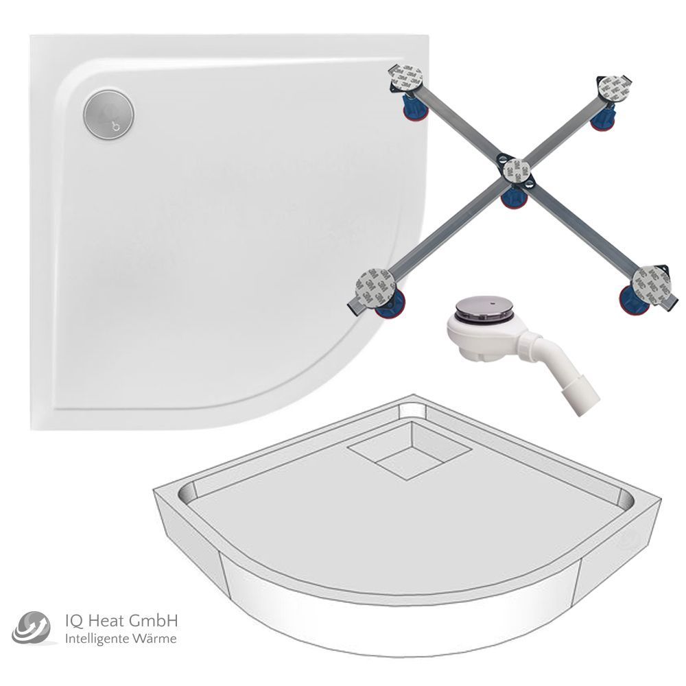 Acryl Viertelkreis Duschwanne Ramera 90 x 90 cm R55 Träger Fußgestell Tempoplex