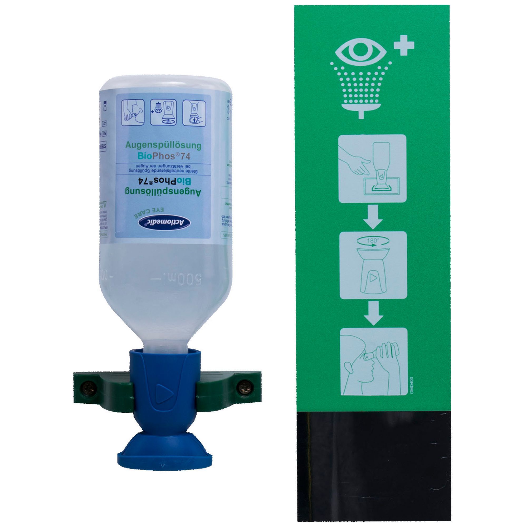 Actiomedic EYE CARE Augenspülstation Single I mit 500 ml BioPhos74 Augenspülflasche