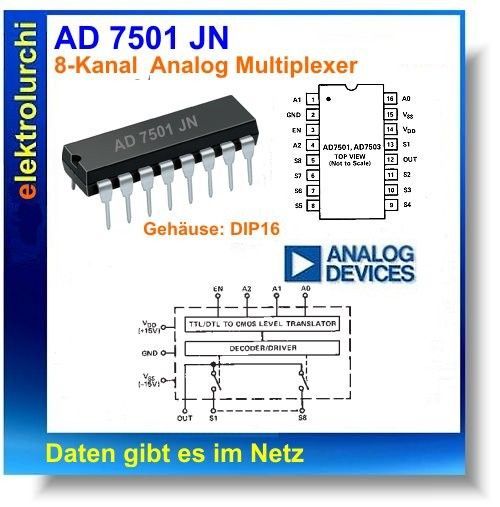 Sie bieten hier auf folgenden Artikel 1 Stück AD7501JN- 8-Kanal Analog Multiplexer, DIP16, AD 7501 JN, Analog Devices Hersteller: Analog Devices Daten gibt es im Netz