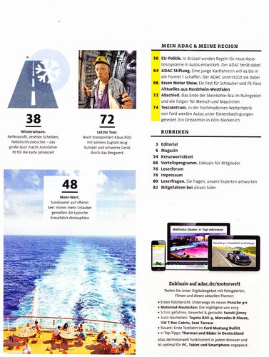 ADAC Motorwelt 11/2018: E-Autos im Vergleich, Kreuzfahrten, ..
