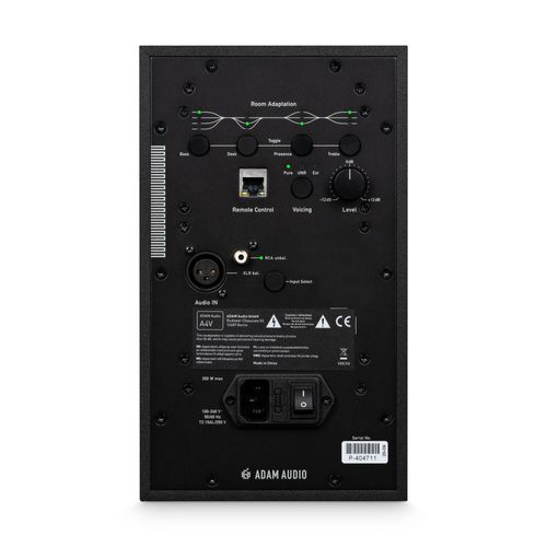 Adam Audio A4V Optimiert für kleine Studioräume, kurze Abhördistanzen und immersive Mehrkanal-Wiedergabe,liefert der kompakte A4V überaus präzisen und druckvollen Sound. Auch dieser 2-Wege Lautsprecher nutzt ADAM Audios renommierten X-ART Hochtöner. Er ist mit einem 4-Zoll Tiefmitteltöner ausgestatt
