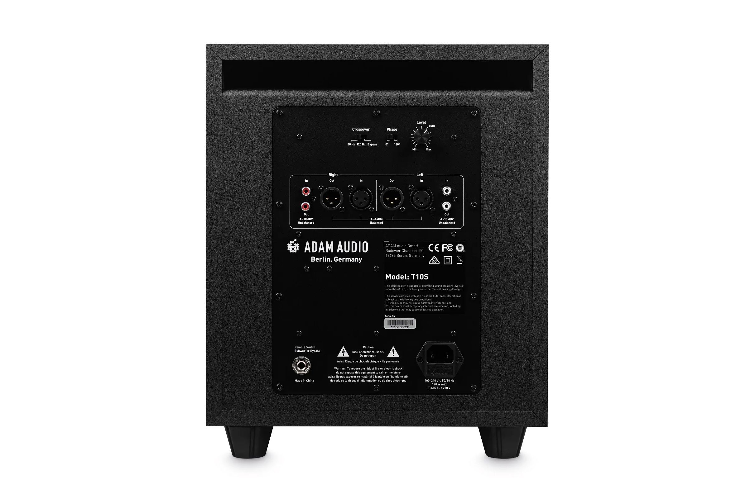 Adam Audio T10S abgestimmt auf Adam T5V und T7V Frequenzbereich: 28 - 120 Hz (-6 dB) Übergangsfrequenz: 80 Hz 120 Hz Bypass Tiefpassfilter einstellbar 2 symmetrische XLR Ein- und Ausgänge 2 unsymmetrische Cinch Ein- und Ausgänge integriertes 115 230 V Netzteil Maße:(BxHxT): 318 x 390 x 413 mm Gewich