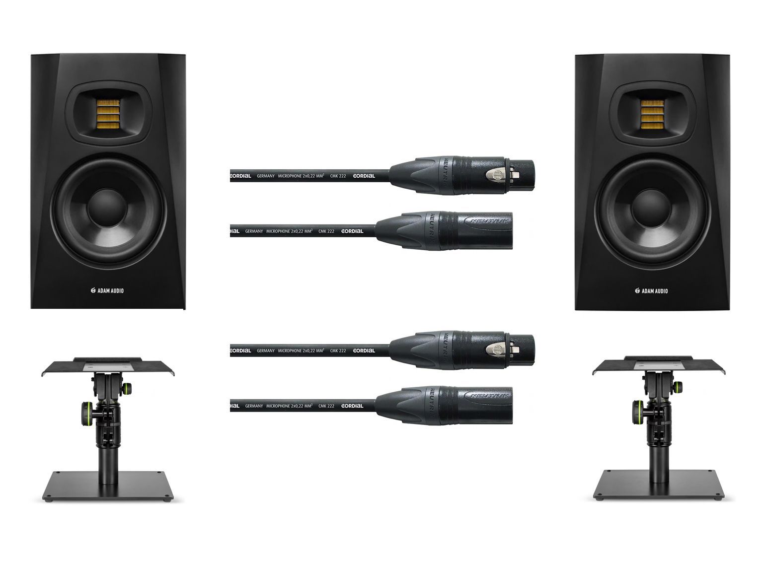Adam Audio T5V Quality Bundle 3 Bestehend aus: 2x Adam Audio T5V - Professioneller 5'' aktiver Studiomonitor 2x Gravity SP 3102 - Bis zu 15° neigbares Vari-Tilt Studiomonitor-Tischstativ 2x Cordial CPM 3 FM - 3 Meter XLR Kabel zur Signalübertragung Adam Audio T5V Nahfeldmonitor 5' Tieftöner und 1.9'