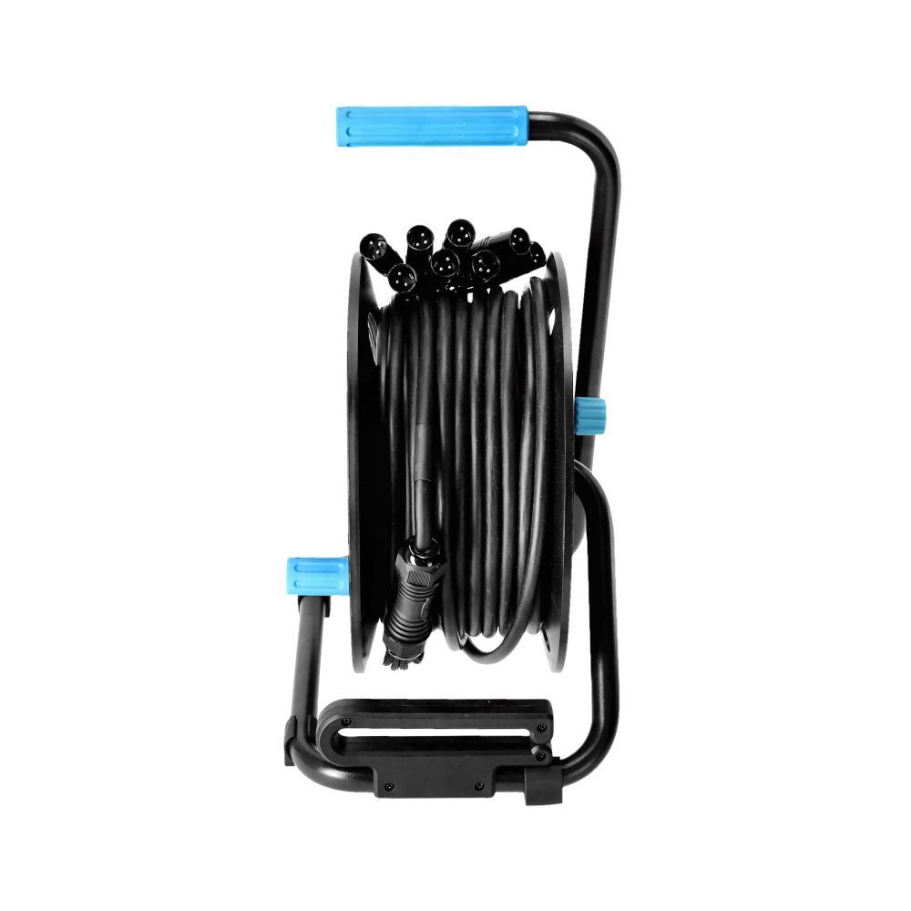 Adam Hall 4 Star CD 15 Multicore 80 Kabeltrommel mit integrierter Stagebox 8 Kanäle (8 send) Fertig konfektioniert auf der 4 STAR CD 042 Trommel Splisslänge: 30 cm Kabellänge: 15 m Paarweise geschirmt Leiterquerschnitt: 2 x 0,22 mm² Gewicht: 4,7 kg