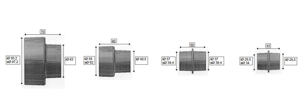 • GÜDE Adapter - 4 Teilig / 100 60 40 34 28 mm - Absauganlage , Säge , Hobel etc