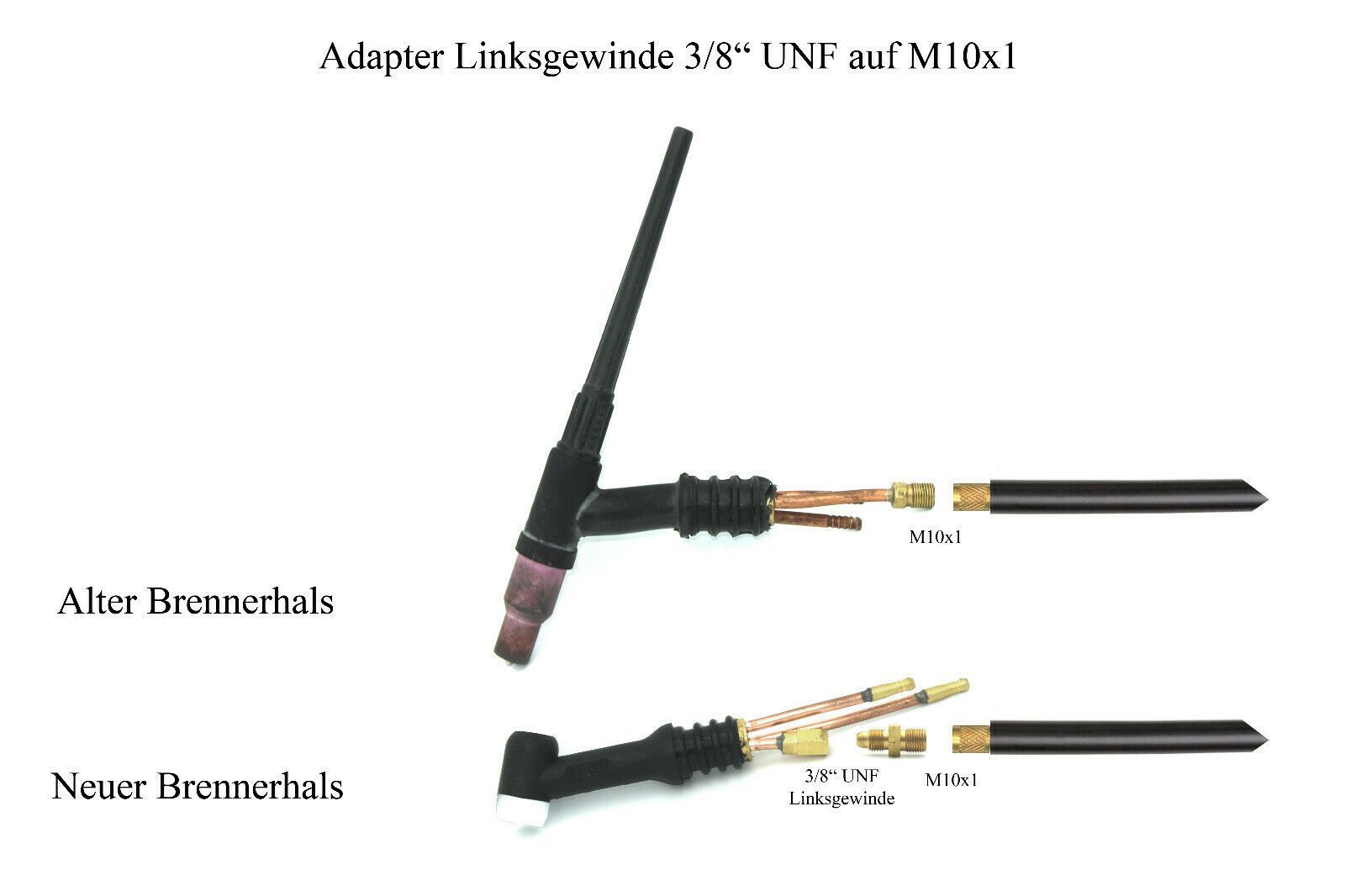 Adapter Doppelnippel 3/8" UNF Linksgewinde LH auf M10x1 Wig Brenner SR 9 17 18
