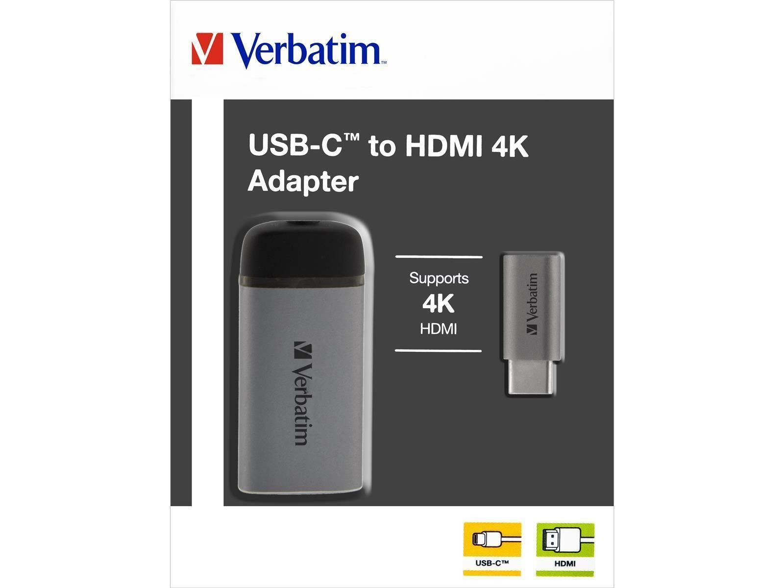 Adapter USB-C auf HDMI 4K von Verbatim, 10cm Kabel, Aluminiumgehäuse