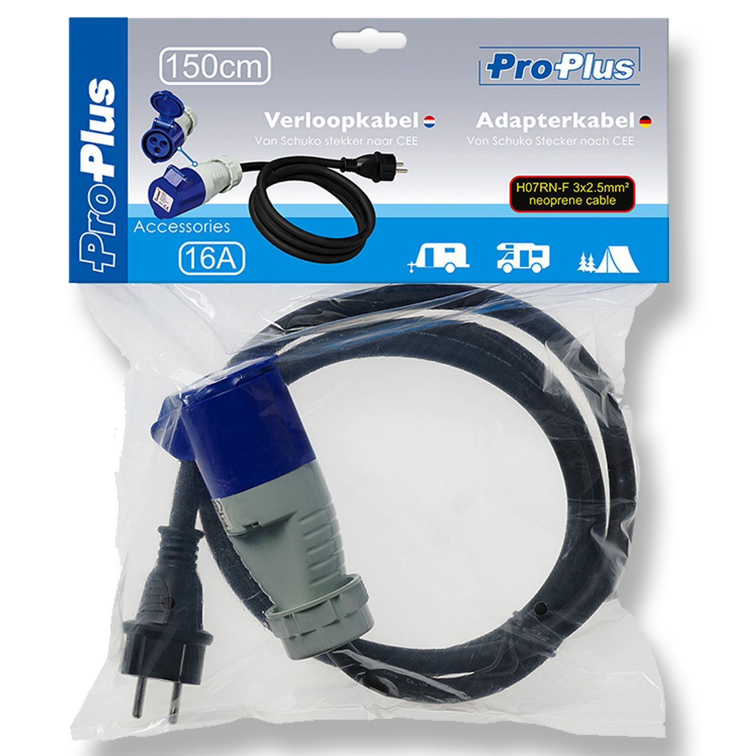 Adapterkabel | Schuko auf CEE | 3-polig | 230V | 16A | 1,5 Meter