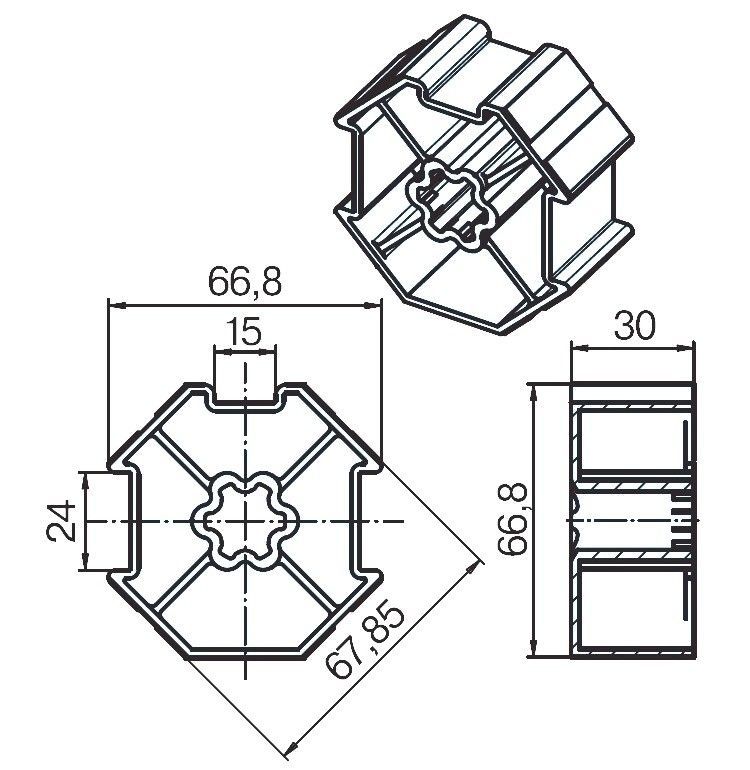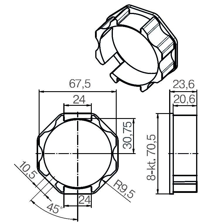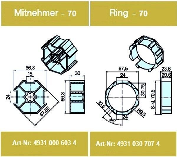 Adapterset für Achtkatwelle 70 , für Rohrmotoren Becker Baureihe L Serie