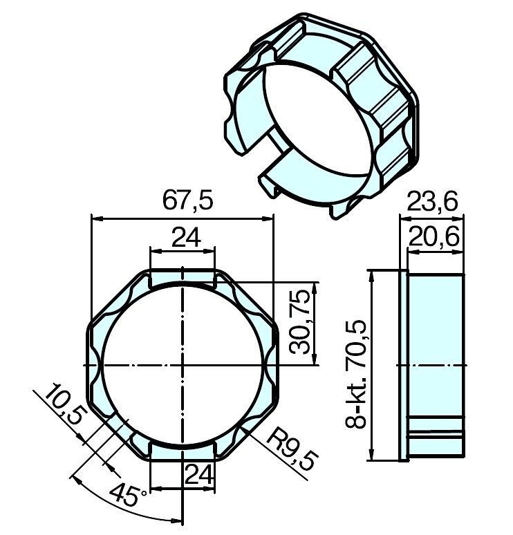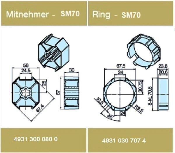 Adapterset für Achtkatwelle SM70, für Rohrmotoren Becker Baureihe L Serie