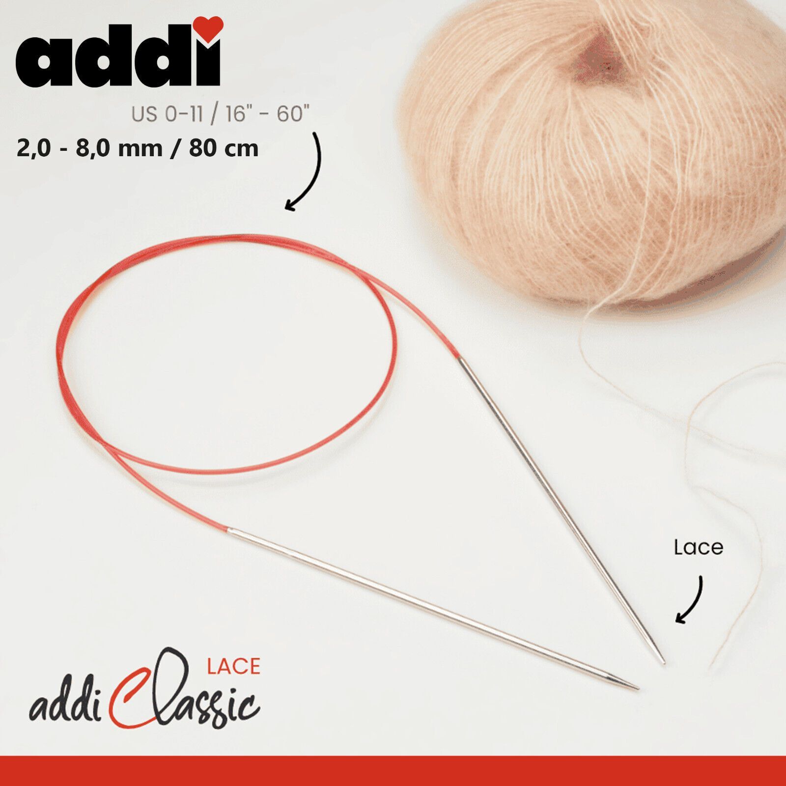 Addi Classic Lace Rundstricknadel Länge 80 cm 16 Größen Produktbeschreibung Mit den Rundstricknadeln von Addi lassen sich, Dank der schmal geformten Spitzen, sehr feine Garnstärken perfekt verstricken. Durch Hohlraumtechnik ist eine stundenlange Benutzung möglich, ohne dass die Hände ermüden. Ma