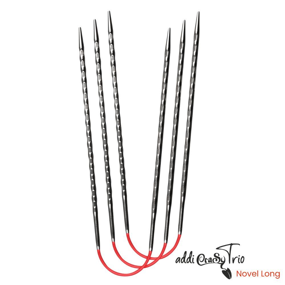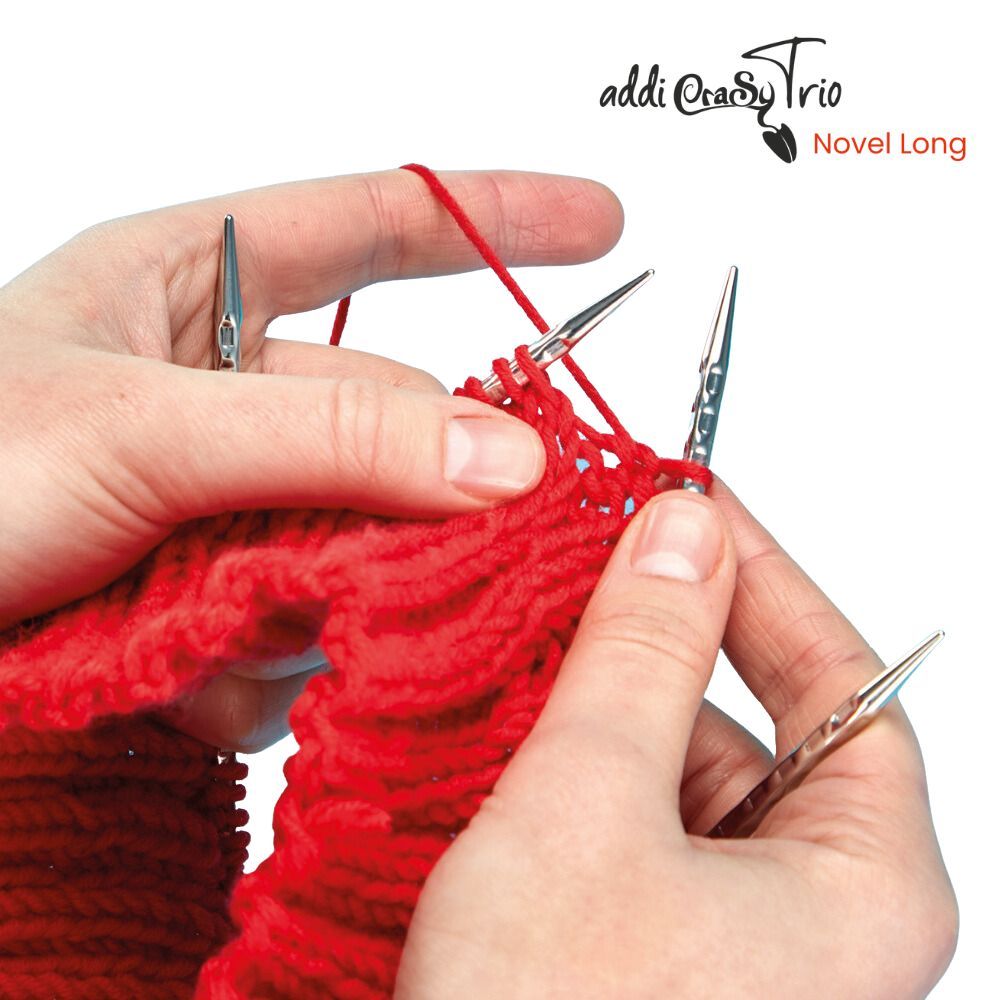 innovative Stricknadel im 3er-Set 2.00 - 8.00 mm - addiCraSyTrio Novel LONG – Ergonomische Stricknadeln für müheloses Stricken Stricken in kleinen Runden war noch nie so einfach Mit dem addiCraSyTrio Novel LONG bringst du dein Strickerlebnis auf ein neues Level! Das innovative 3er-Set ermöglicht ein