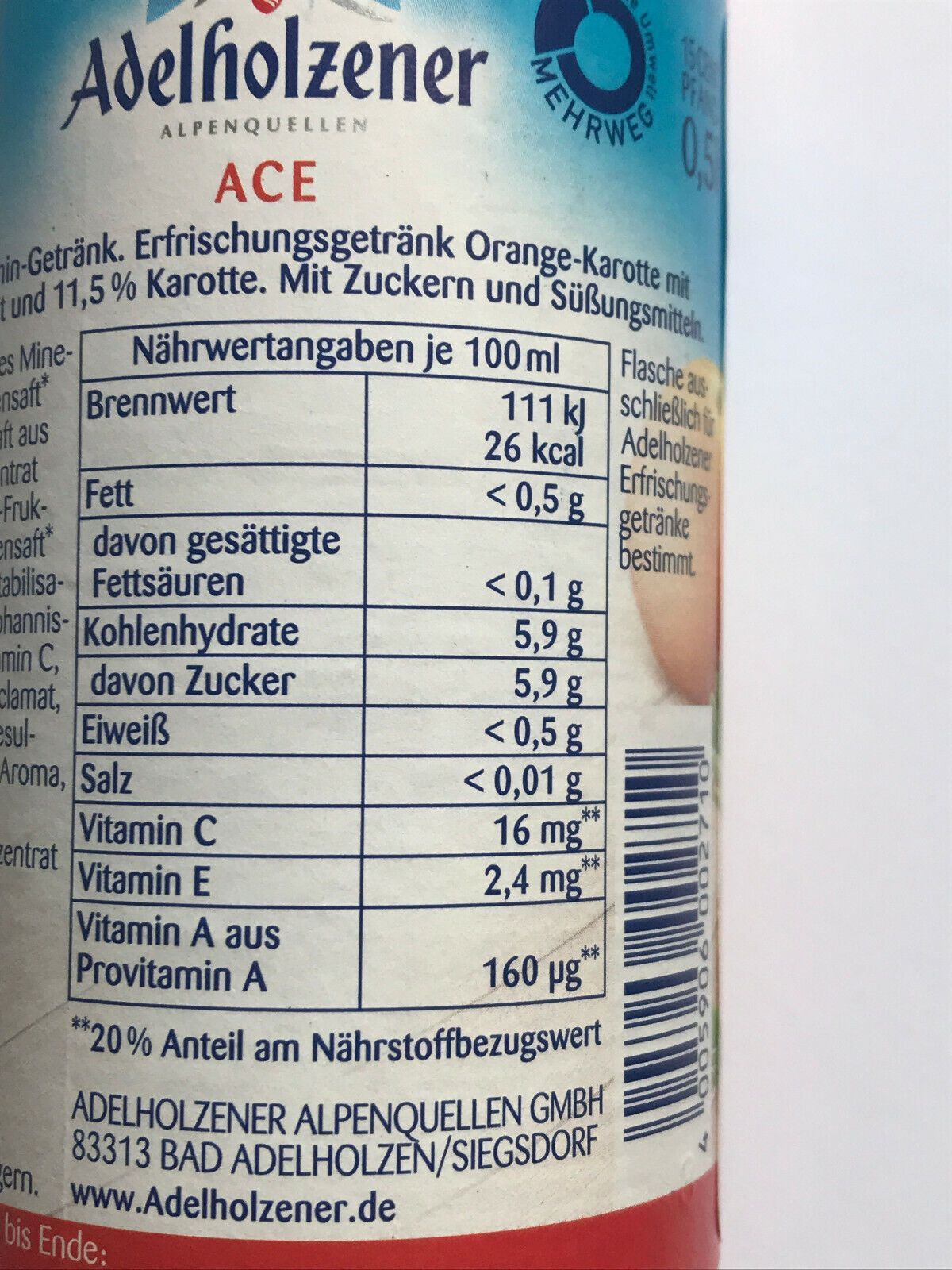 Adelholzener ACE PET - Mehrweg - 12x500ml