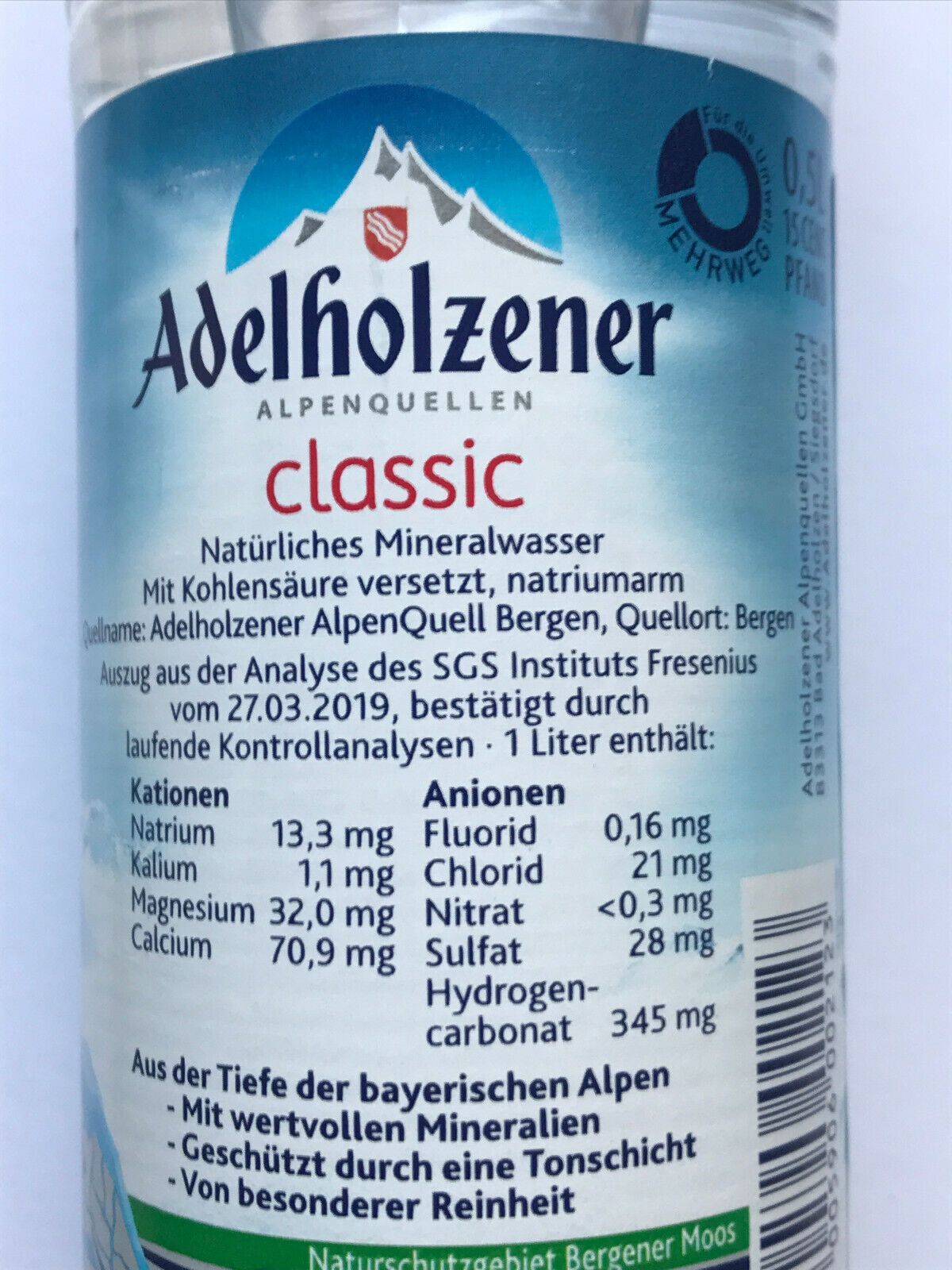 Adelholzener Mineralwasser Classic mit Kohlensäure - Mehrweg - 12x500ml