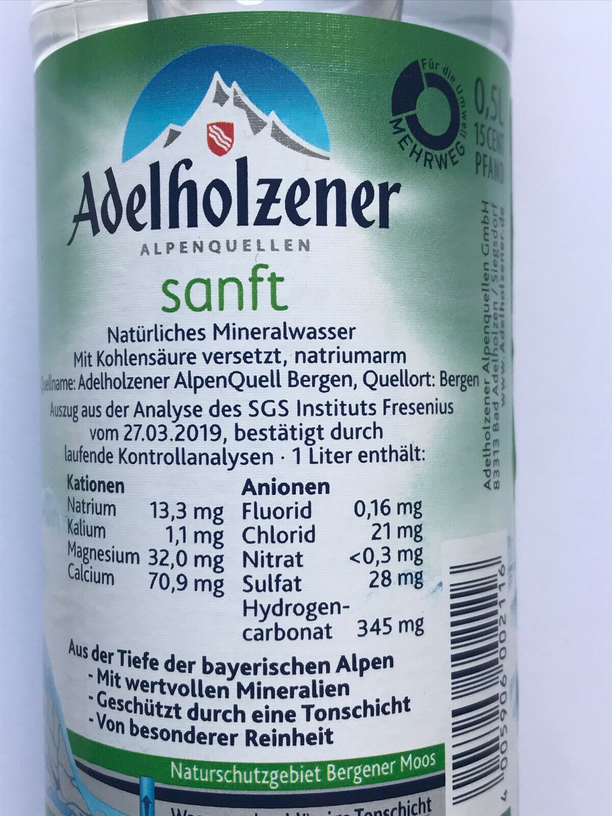 Adelholzener Mineralwasser Sanft mit wenig Kohlensäure - Mehrweg - 12x500ml