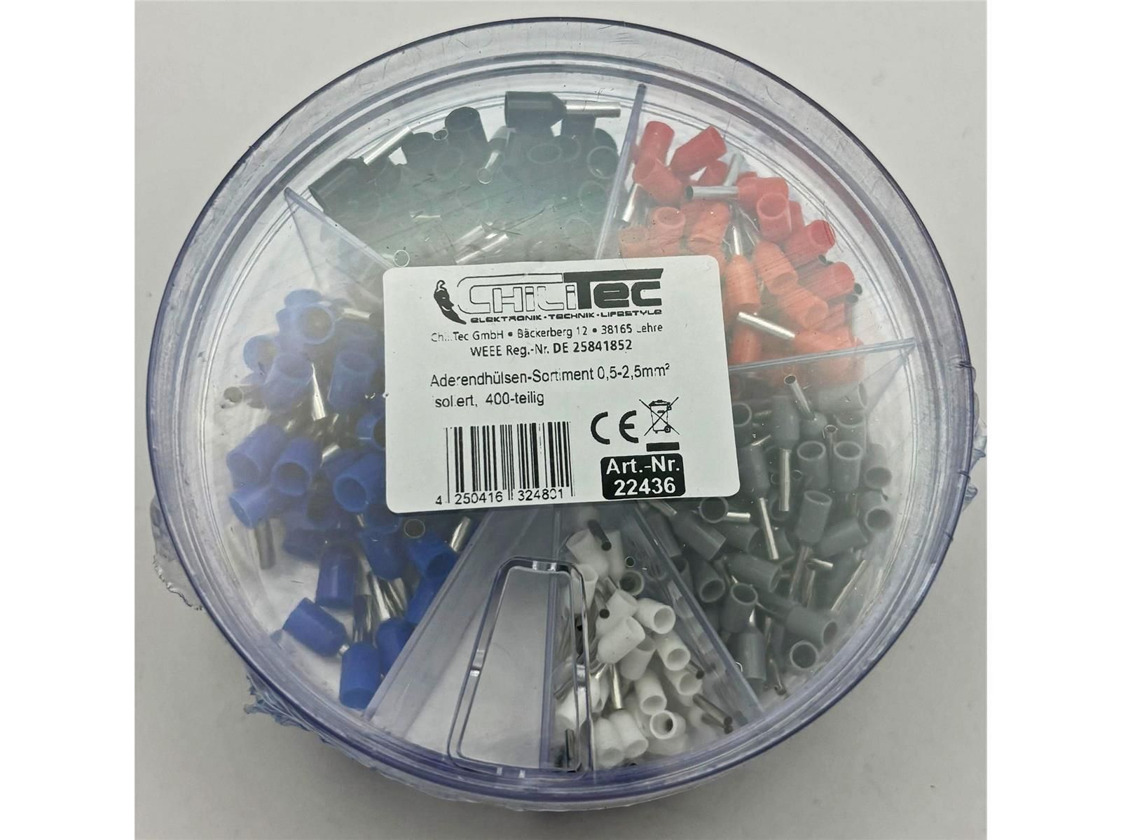 ChiliTec Aderendhülsen-Sortiment 0,5-2,5mm²isoliert, in Streudose, 400-teilig