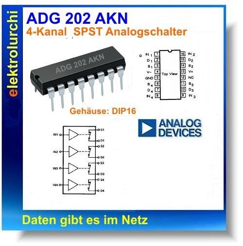 Sie bieten hier auf folgenden Artikel 1 Stück ADG202AKN - 4-Kanal SPST Analogschalter, DIP16, ADG 202, Analog Devices Hersteller: Analog Devices Daten gibt es im Netz