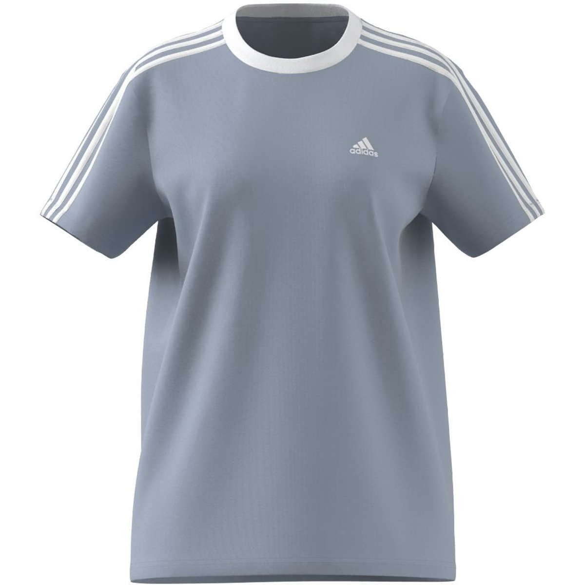 adidas Damen Essentials 3-Stripes T-Shirt hellblau mit weißen Logo