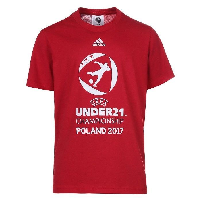 Adidas T-Shirt CD8256 U21 Europameisterschaft Polen 2017 Offiziell lizensiertes Produkt zur U21 Europameisterschaft 2017 in Polen. Achsel zu Achsel: ca. 35cm (in Gr. 128) Länge: ca. 49cm (in Gr. 128) Material: 70% Baumwolle, 30% Polyester
