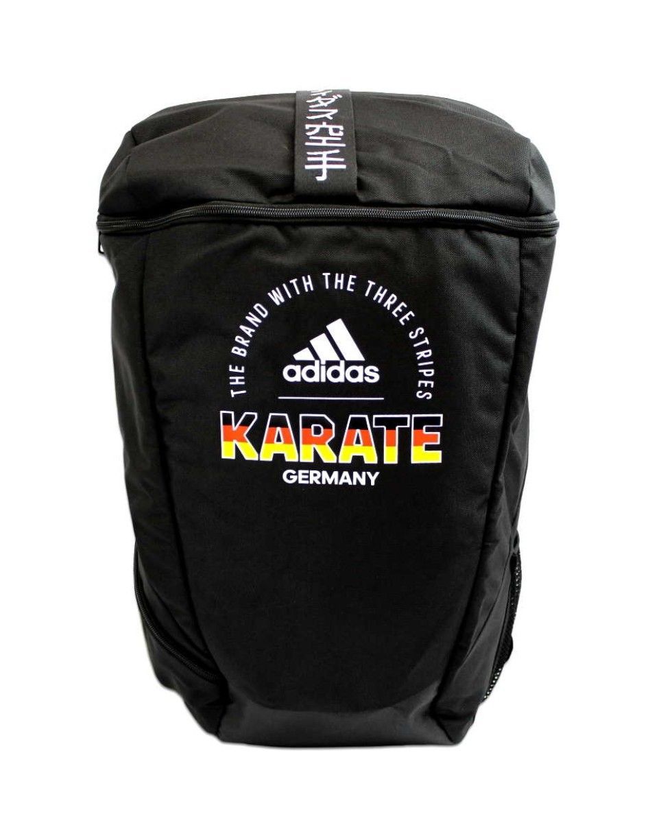 Eigenschaften: großer Reißverschluss zum Öffnen innenliegendes gepolstertes Tabletfach seitliche Tasche Trageschlaufe oben Verstellbare, gepolsterte Schultergurte adidas Logo als Druck auf der Vorderseite und Schultergurt 100 % Nylon/Polyester Farbe: schwarz verschiedene Größen: M: 50 x 31 x 20, ca. 31 Liter L: 57 x 33 x 23, ca. 43 Liter