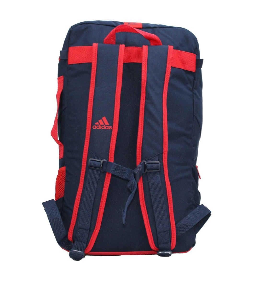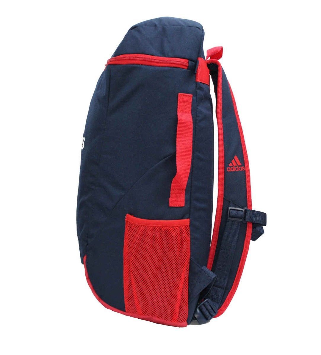 Eigenschaften: großer Reißverschluss zum Öffnen innenliegendes gepolstertes Tabletfach seitliche Tasche Trageschlaufe oben Verstellbare, gepolsterte Schultergurte adidas Logo als Druck auf der Vorderseite und Schultergurt 100 % Nylon/Polyester Farbe: dunklau/rot verschiedene Größen: S: 45 x 28 x 17, ca. 21 Liter M: 50 x 31 x 20, ca. 31 Liter L: 57 x 33 x 23, ca. 43 Liter