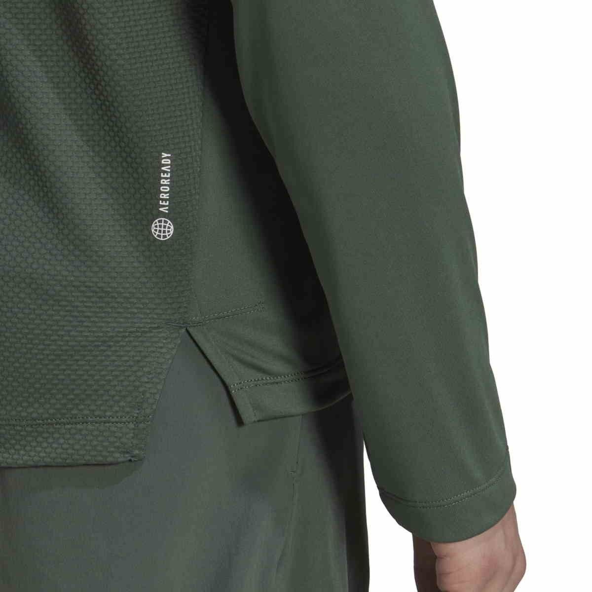 Eigenschaften: Material: 100% Polyester; teilweise mit recycelten Materialien hergestellt Farbe: olivegrün atmungsaktive Mesh Aeroready Technik Feinwäsche 40°C Seitliche Schlitze; länger geschnittenes Rückenteil Hergestellt in Vietnam