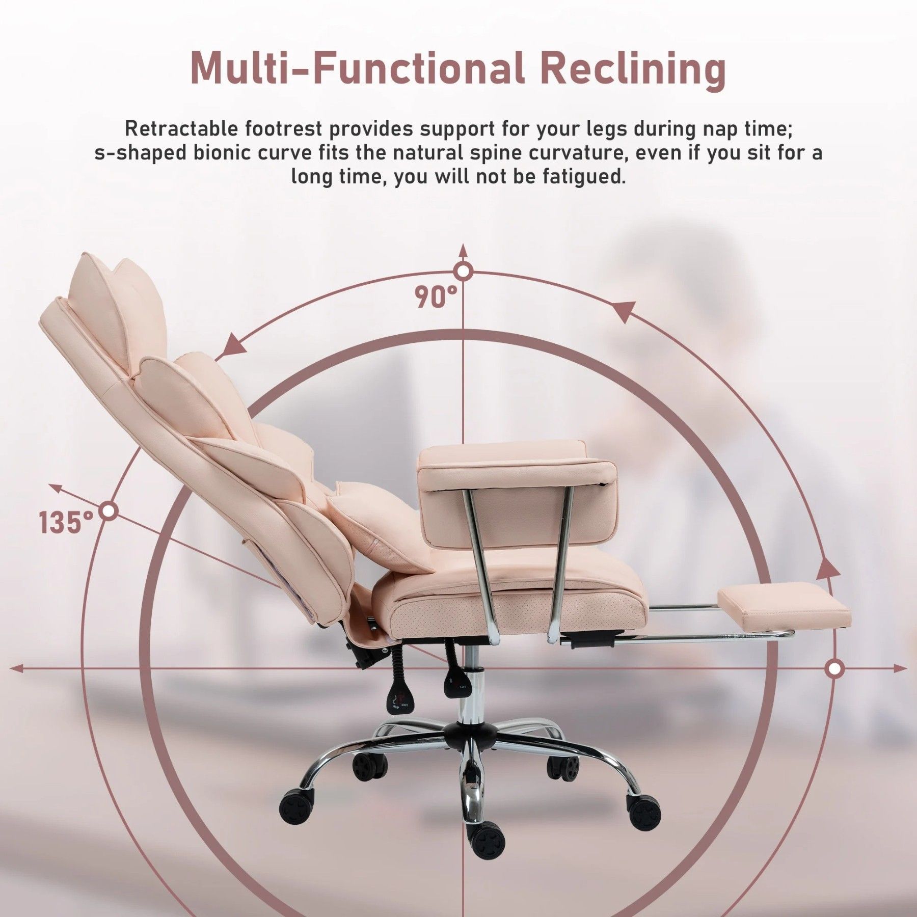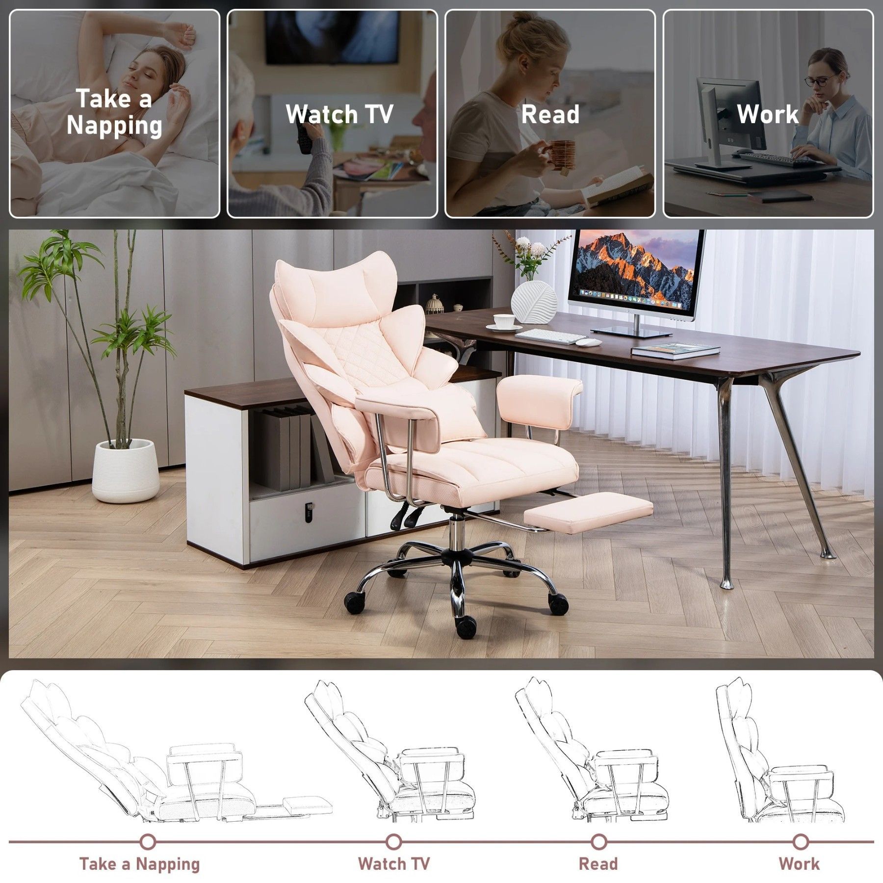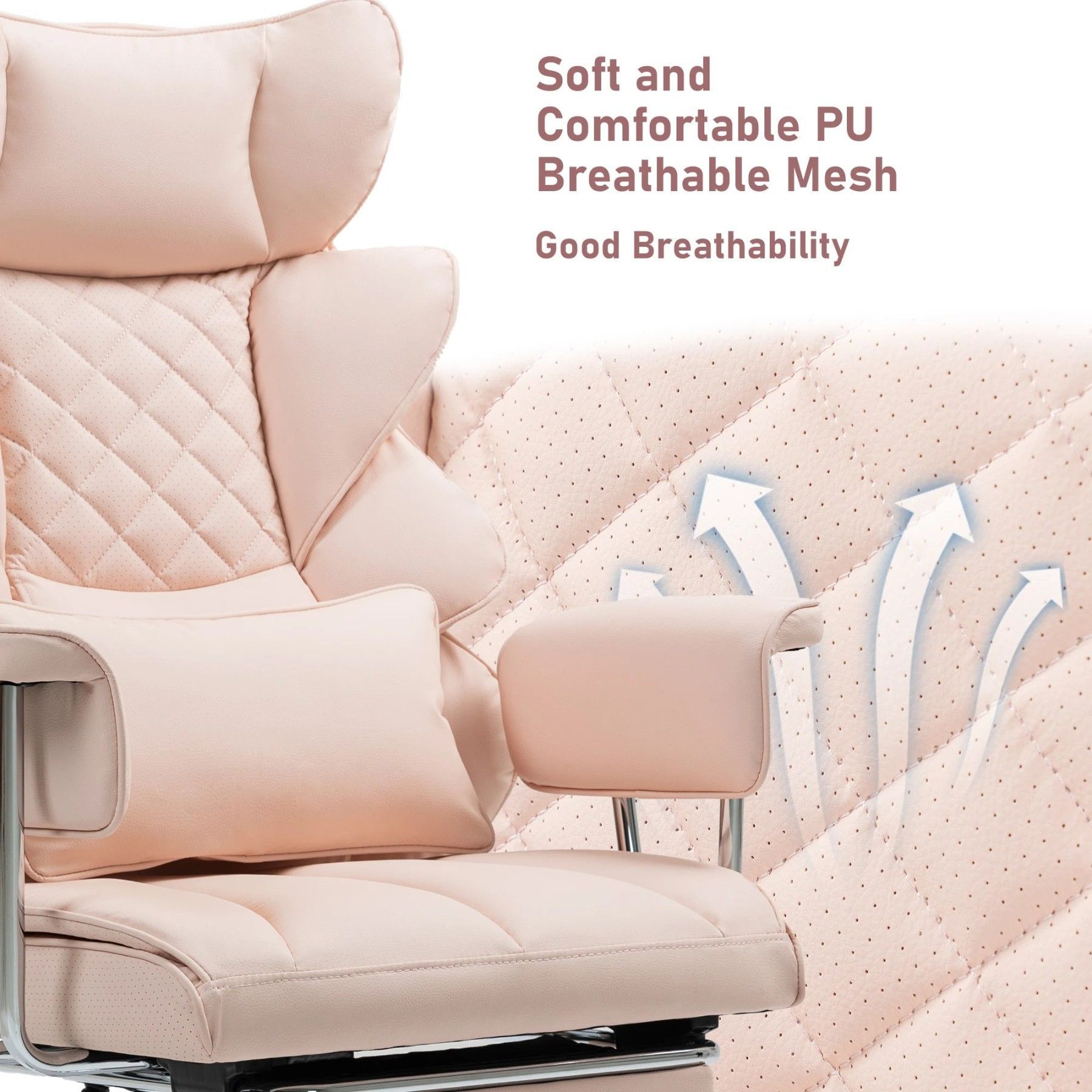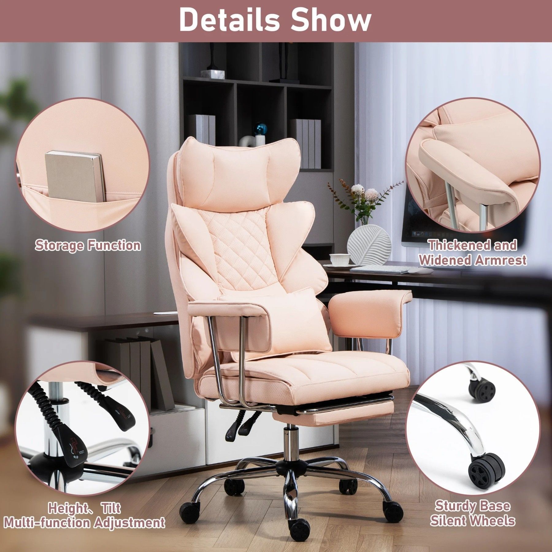 : Dieser vielseitige Sessel in Rosa vereint Komfort und Stil. Er ist höhenverstellbar, drehbar und mit einer Fußstütze ausgestattet, ideal als Chefsessel oder Gaming-Stuhl geeignet.