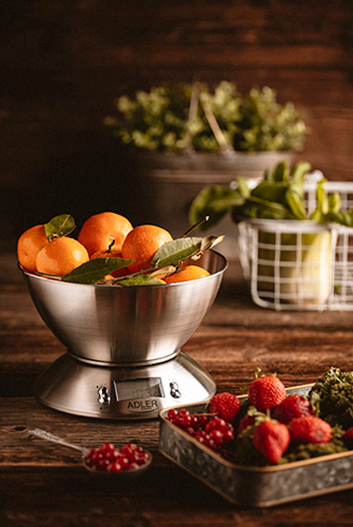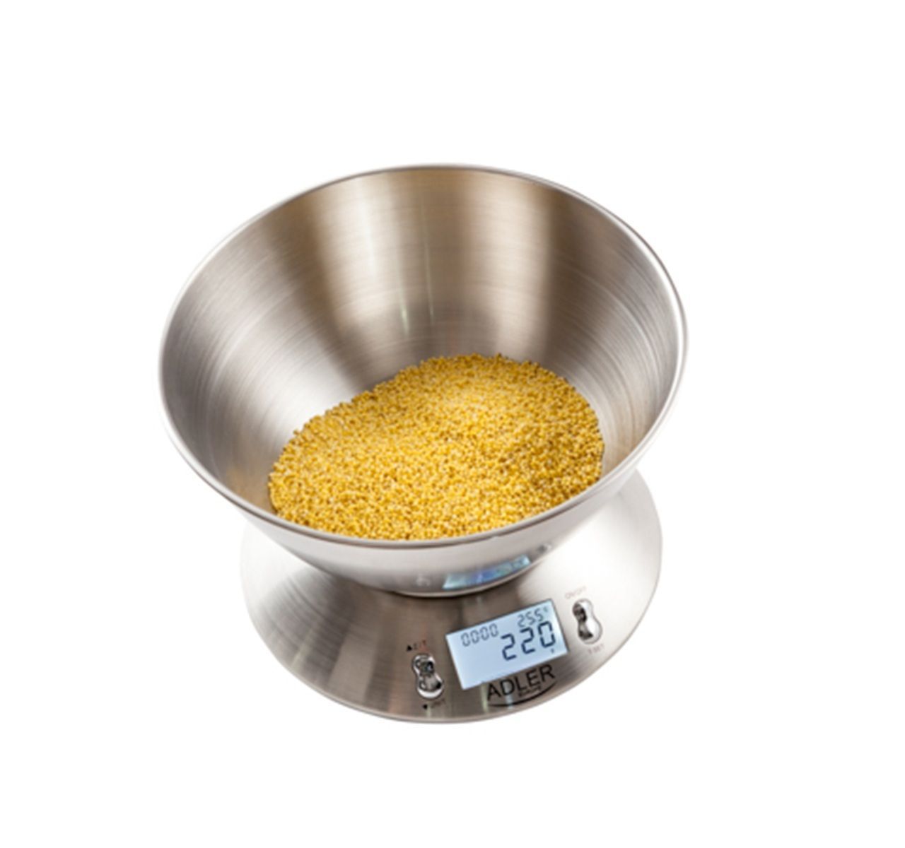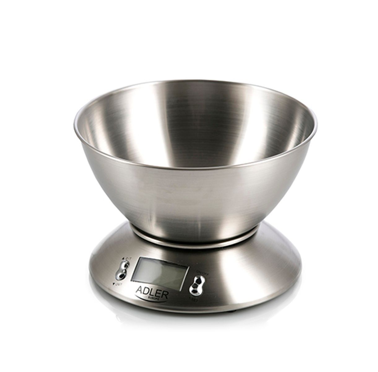 Adler Adler AD 3134 Digitale Küchenwaage aus Edelstahl mit Schüssel & LCD-Display