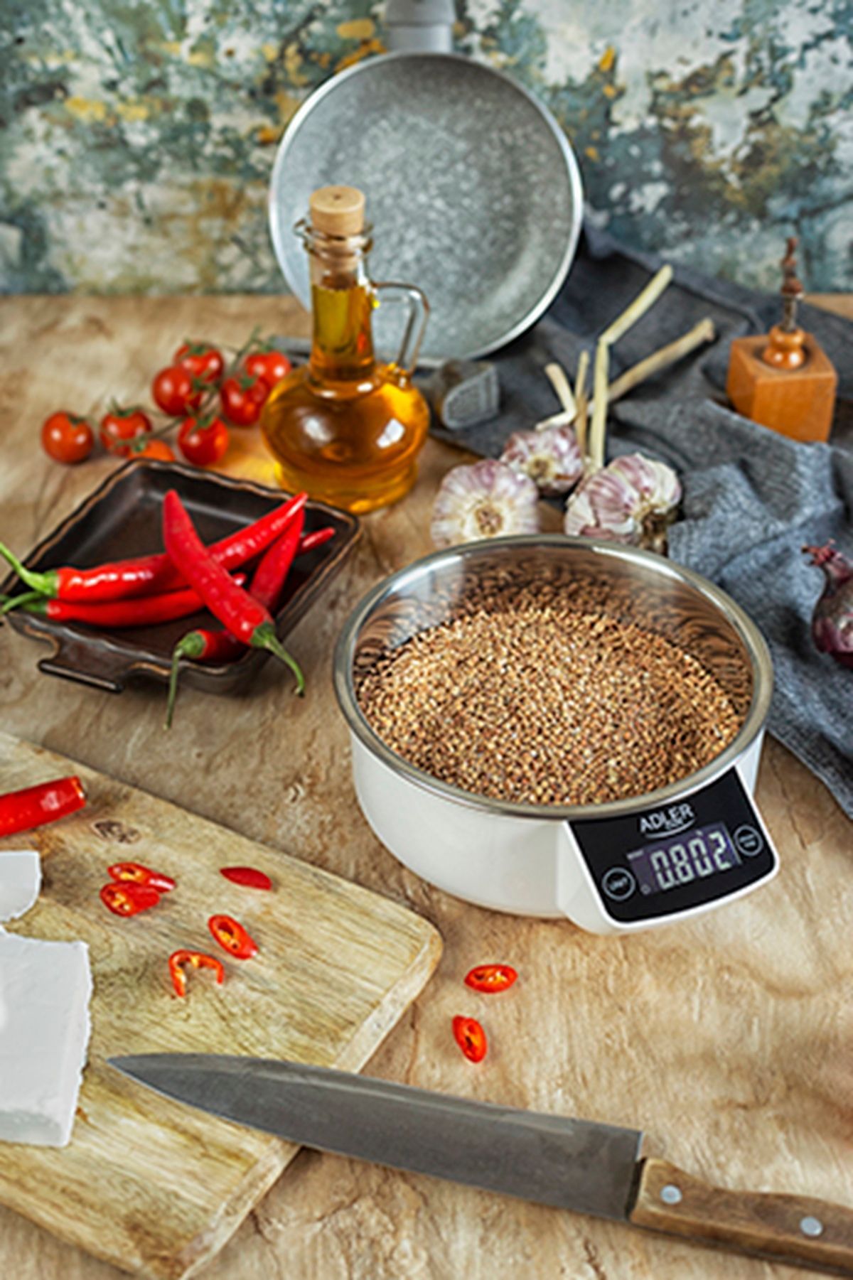 Adler Adler AD 3166 Digitale Küchenwaage mit Display & Schüssel, TARA-Funktion in Weiß