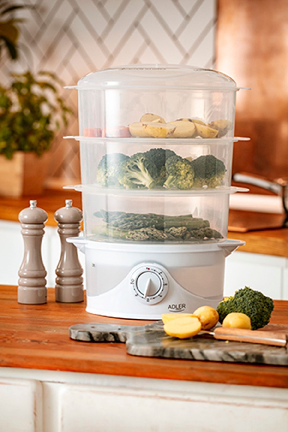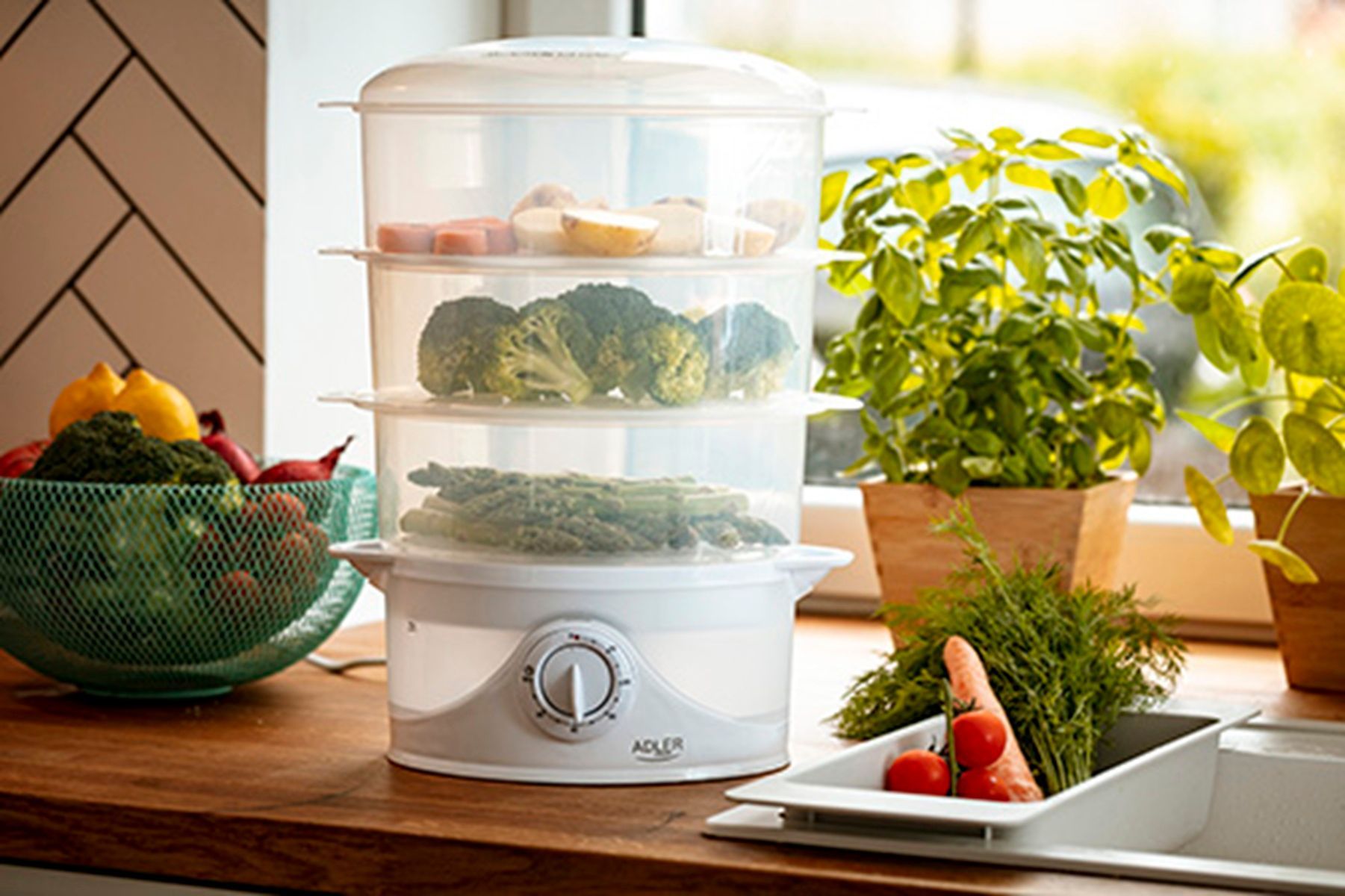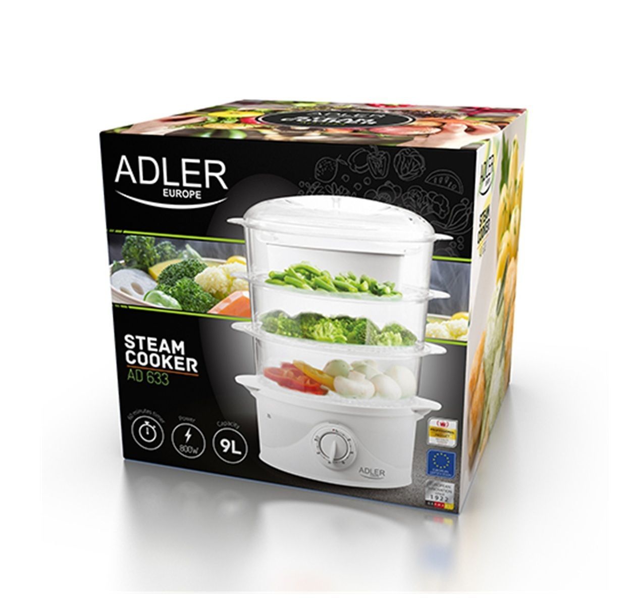 Adler Adler AD 633 Dampfgarer 800W - mit 3 Behältern, 9L & Reisschale in Weiß