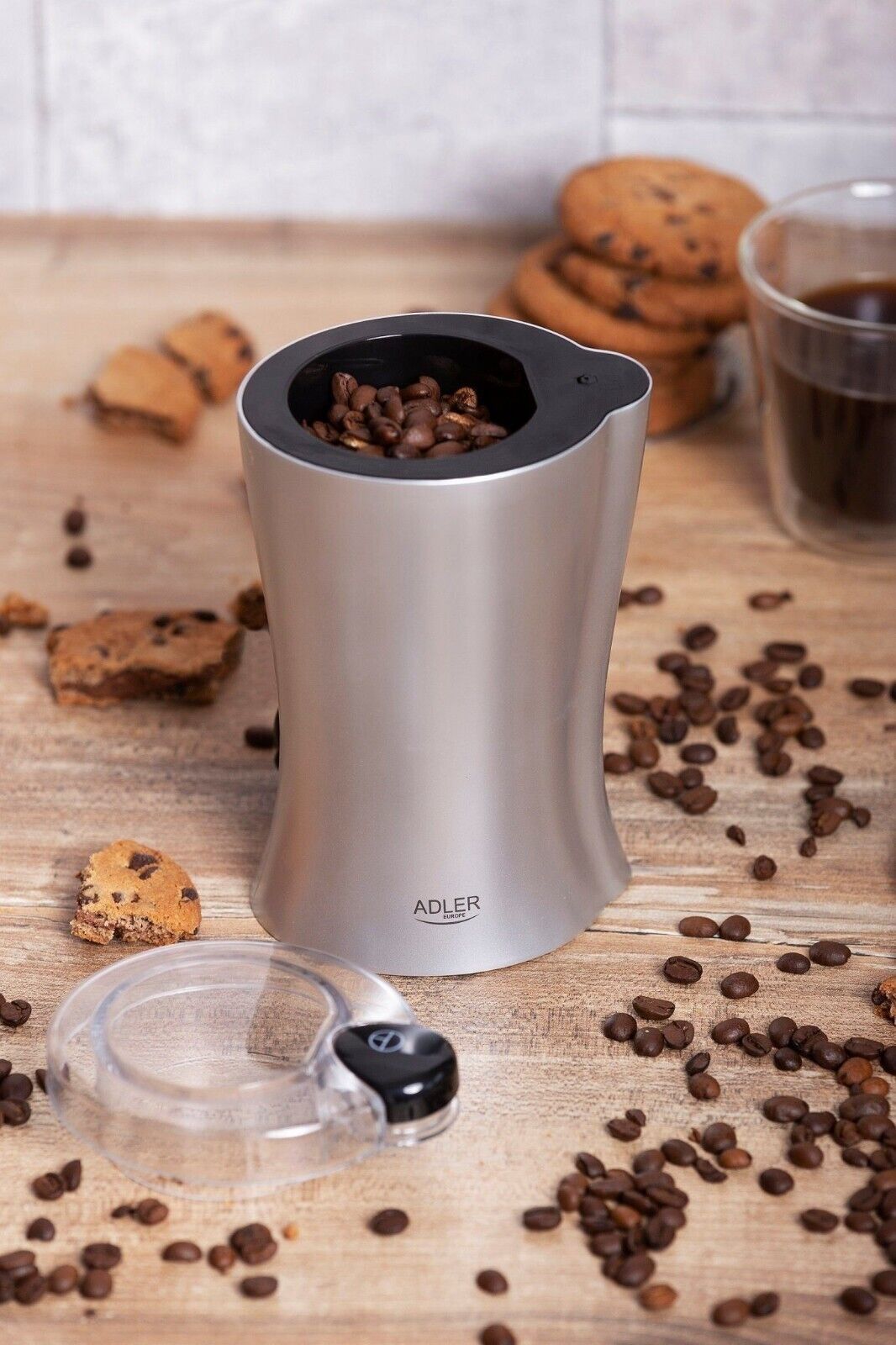 ADLER AD443 Kaffeemühle elektrisch, 150W, Kaffee, Silber, 70g Füllmenge, Latte