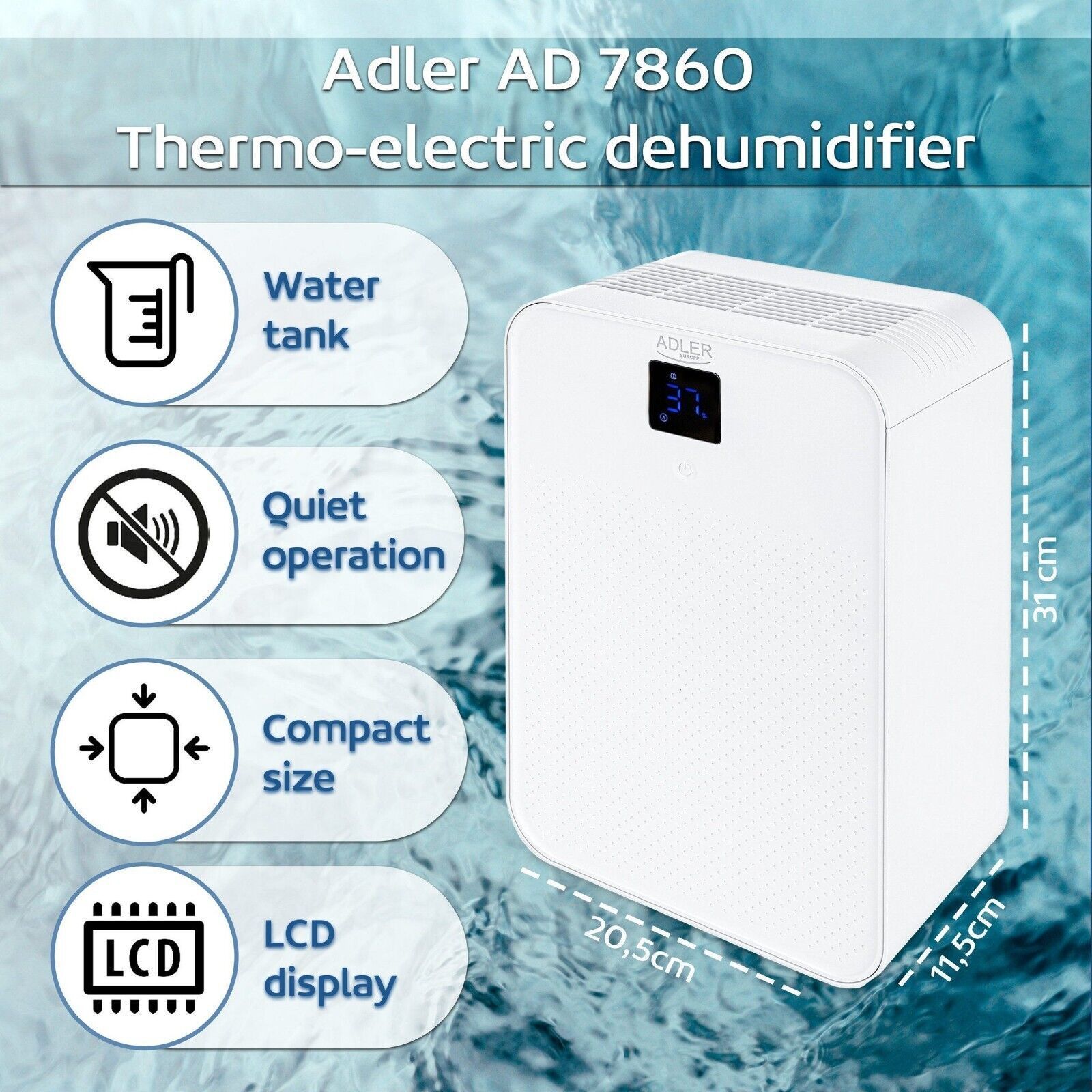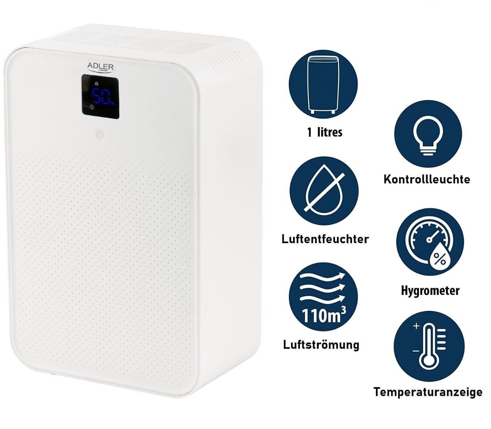 Adler Mini Luftentfeuchter Elektrisch 90W, Lufttrockner, Entfeuchter, Wassertank