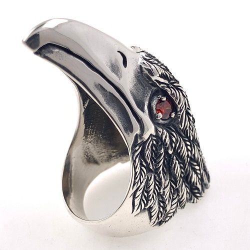 Adlerkopf Herrenring aus 925 Silber mit Granaten Gr 64 EU - Handarbeit