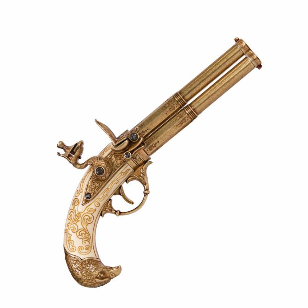 Adlerkopf Steinschloßpistole dreiläufig elfenbein-messingfarbend (Gr. 30cm)