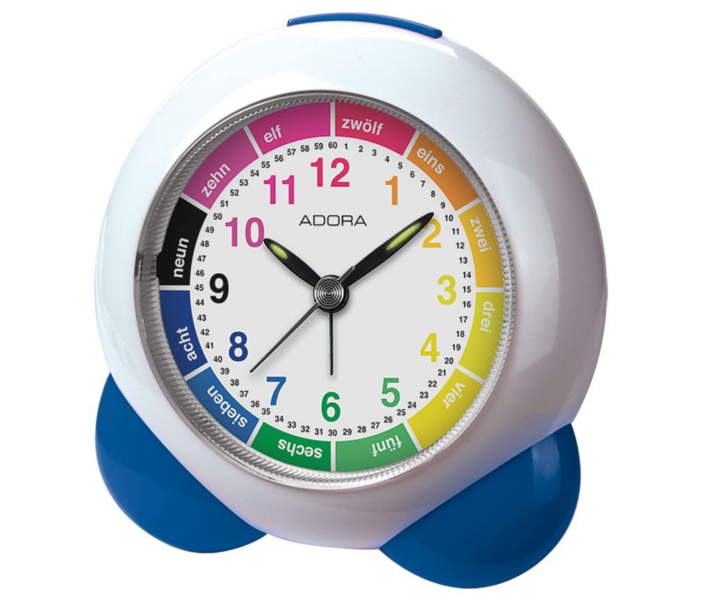 Adora Adora Kinderwecker?Wecker weiß/ blau Lernzifferblatt rund 33387